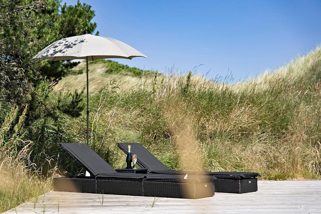 Den store, flotte terrasse indbyder til lange dage i det fri, hvor du kan nyde solen i en god liggestol eller samles til grillmiddag om aftenen. Terrassen ligger skærmet for vinden, så du kan slappe af i fred og ro, mens du lytter til fuglenes kvidren og den fjerne brusen fra havet. Her kan du starte dagen med en kop kaffe i morgensolen og slutte den af med et glas vin under den stjerneklare himmel.