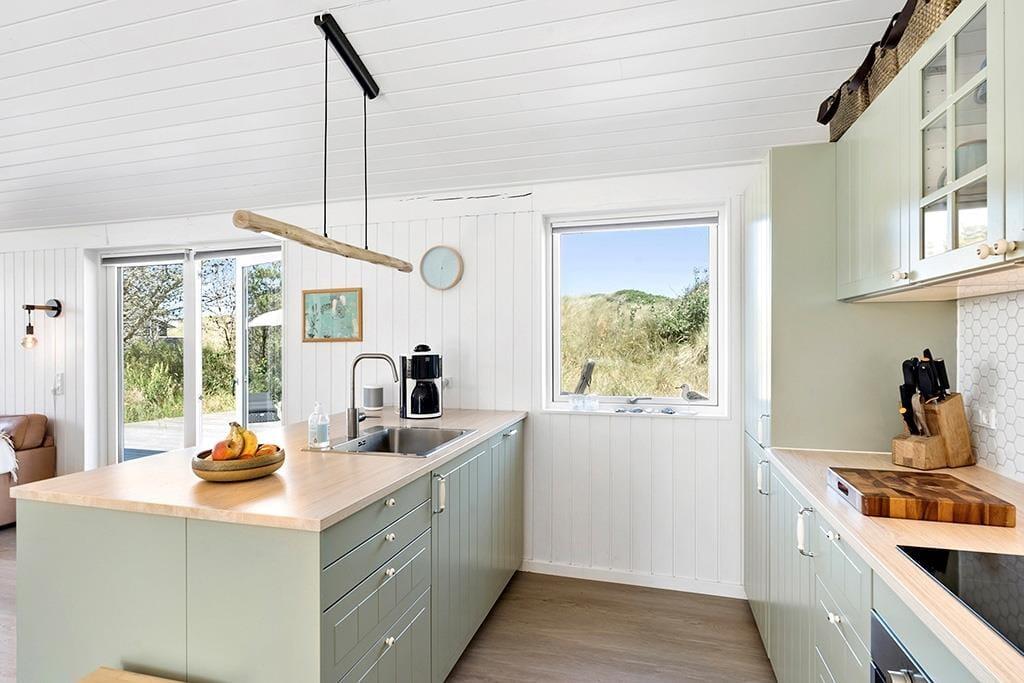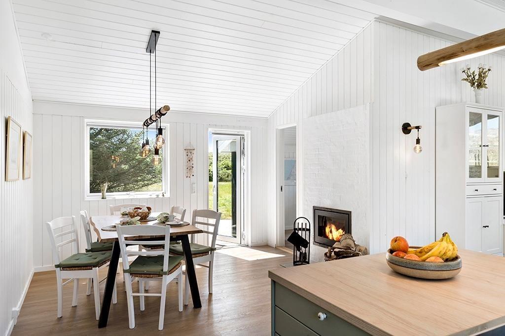 Sommerhusets indretning er lys og venlig med stilfulde møbler og store vinduespartier, der trækker naturens lys helt ind i rummene. Opholdsrummet fungerer som det naturlige samlingspunkt, hvor du kan nyde hyggelige måltider, brætspilsaftener og afslapning foran tv’et. Det moderne køkken er udstyret med alt, hvad du har brug for til feriens madlavning, og der er god skabsplads til opbevaring af dine dagligvarer. Uanset om du er på ferie med familie eller venner, vil du her føle dig hjemme i komfortable rammer.