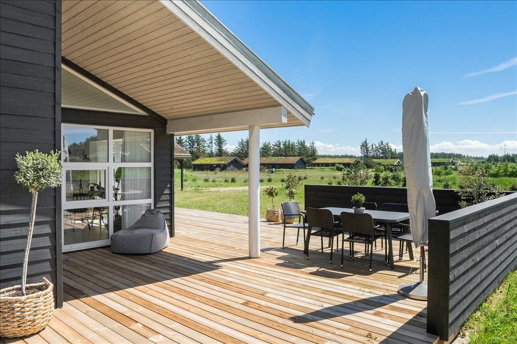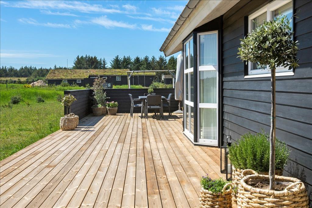 Sommerhuset byder på flere dejlige terrasser, der er strategisk placeret rundt om huset, så I kan finde sol eller skygge hele dagen. Den store terrasse er det ideelle sted til at nyde morgenkaffen, mens en mindre terrasse giver mulighed for at trække sig tilbage i ro og fred. Uanset hvor I sidder, kan I høre fuglene kvidre og mærke den friske luft omkring jer. Den store have indbyder til både afslapning og leg, og der er masser af plads til at nyde livet i det fri – hvad enten det er til en god middag på terrassen eller en stille stund med en god bog.