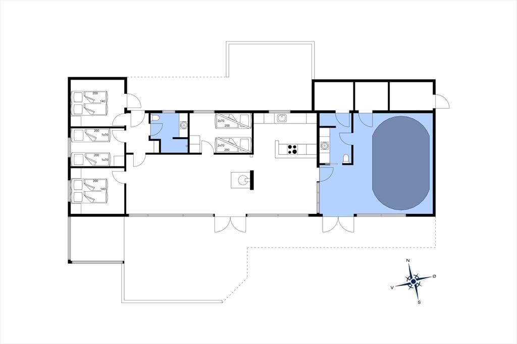 Velkommen indenfor i et sommerhus, der er som skabt til familieferie. Den rummelige stue med store vinduespartier giver en følelse af lys og luft og indbyder til hyggelige stunder med brætspil, film eller en god bog. Stuen ligger i åben forbindelse med køkkenet, hvor feriens kokke nemt kan svinge gryderne, mens familien samles omkring spisebordet. Huset råder over flere soveværelser, der alle er indrettet i en varm og imødekommende stil. Som prikken over i'et finder du en privat poolafdeling, der byder på timer af sjov og leg, og hvor du samtidig kan slappe af i saunaen, mens ungerne nyder bassinet.