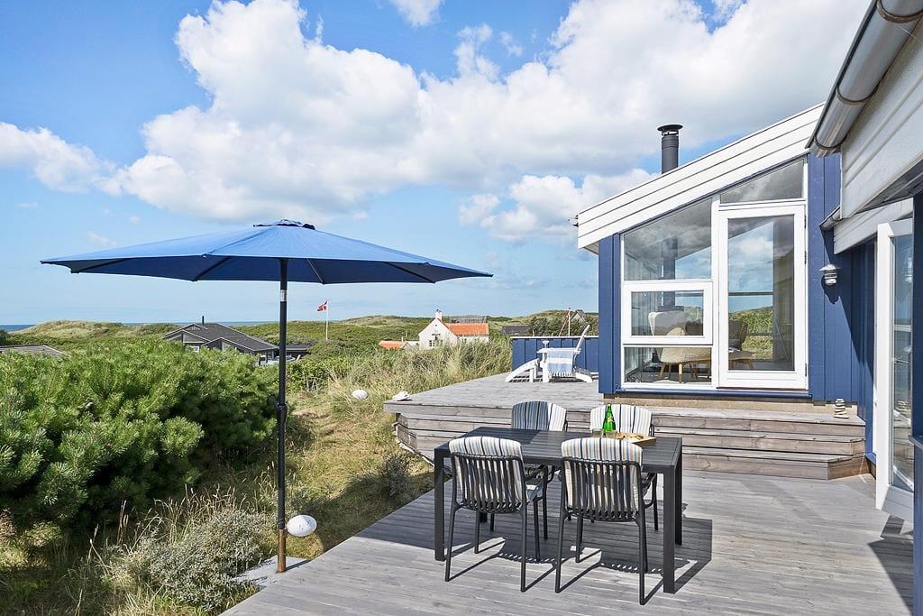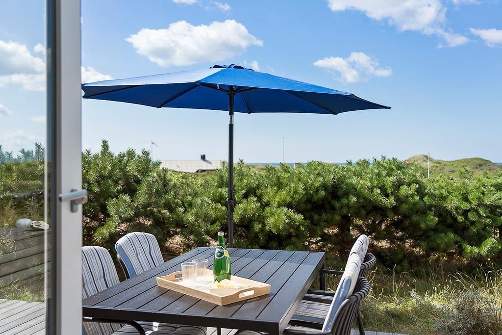Dette sommerhus er det ideelle sted for Jer, der ønsker at tilbringe tid udendørs i smukke og rolige omgivelser. Terrassen er det naturlige samlingspunkt på solrige dage. Her kan I nyde måltider i det fri, slappe af med en god bog eller bare læne Jer tilbage og nyde udsigten over det brusende Vesterhav i helt private omgivelser. Om aftenen kan I sidde ude og se solnedgangen, mens I lytter til bølgerne, der ruller ind mod stranden.