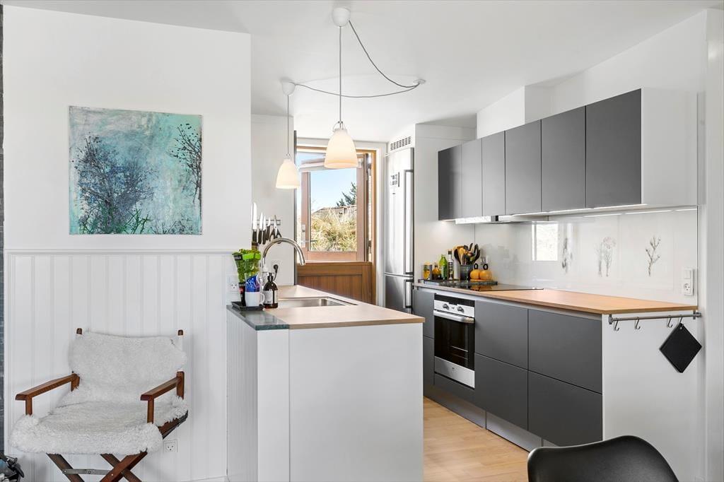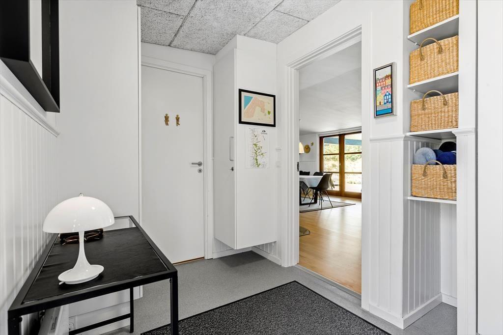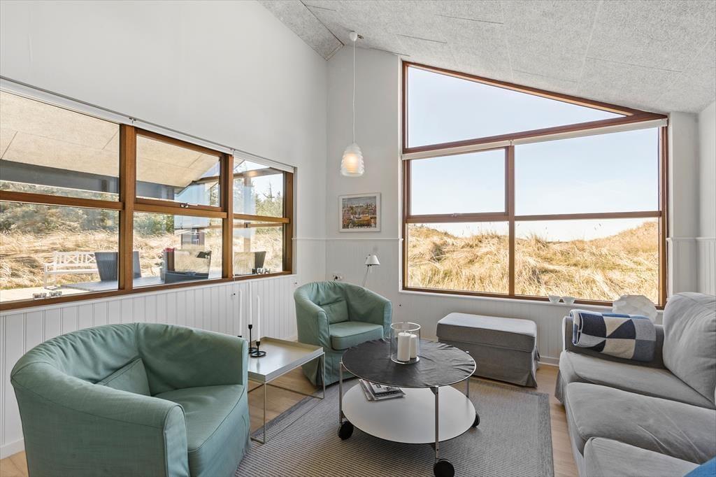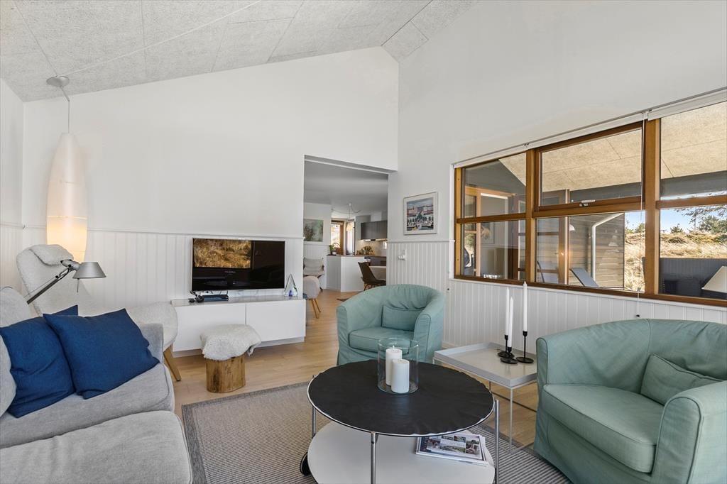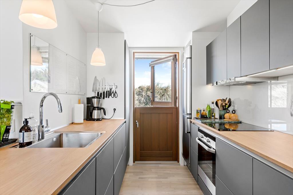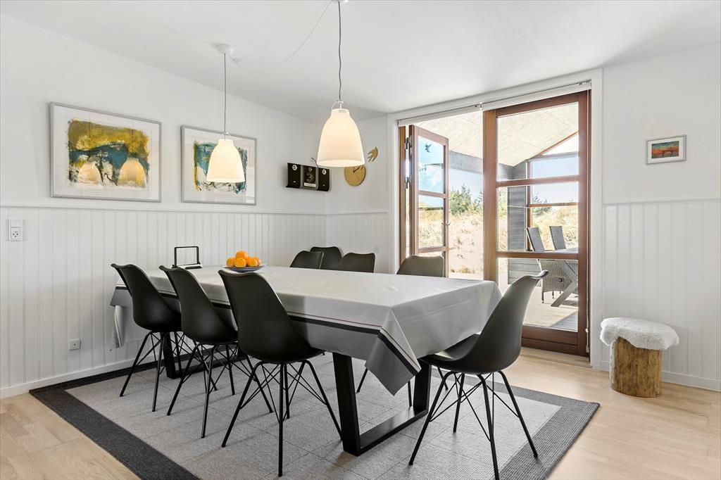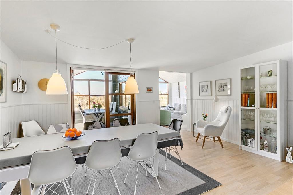Indendørs byder sommerhuset på en lys og venlig indretning, hvor åbne rum og store vinduespartier skaber en indbydende atmosfære, der umiddelbart får dig til at føle dig hjemme. Køkkenet og opholdsrummet er i åben forbindelse, så du kan være tæt på hinanden, uanset om der kokkereres i køkkenet, hygges med brætspil foran brændeovnen, eller du bare ønsker at slappe af med en god bog. Med en praktisk planløsning er der god plads til både familier og vennegrupper, der ønsker at tilbringe tid sammen under samme tag, men med mulighed for at finde en stille hyggekrog, når man har brug for det. Det er det perfekte sted at nyde din ferie, uanset om du er til afslapning eller små aktiviteter.