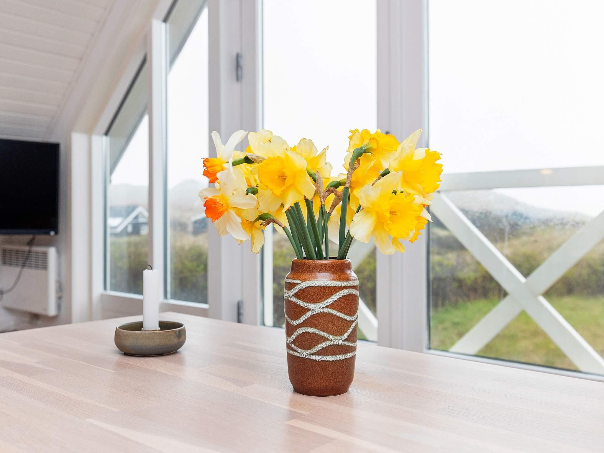 Ca. 250 meter fra strand og med havkig fra opholdsstuen på 1. sal ligger dette sommerhus som sidste hus før stranden ved en af Vestkystens mest attraktive strande. Huset ligger i god afstand til vejen der fører fra stranden til Saltum by. Overalt i huset har I fornemmelsen af at befinde jer midt i klitterne. På terrassen mod syd og vest er I fuldstændig ugeneret og i læ. Her kan I finde sol eller skygge samt nyde havets brusen og marehamlens smukke farver.