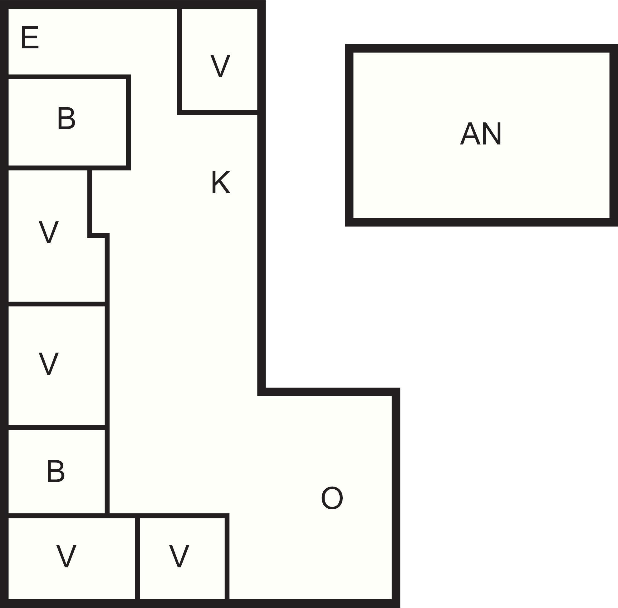 Husets indretning er stort køkken/alrum, 5 værelser, 2 badeværelser og aktivitetsrum i annekset.