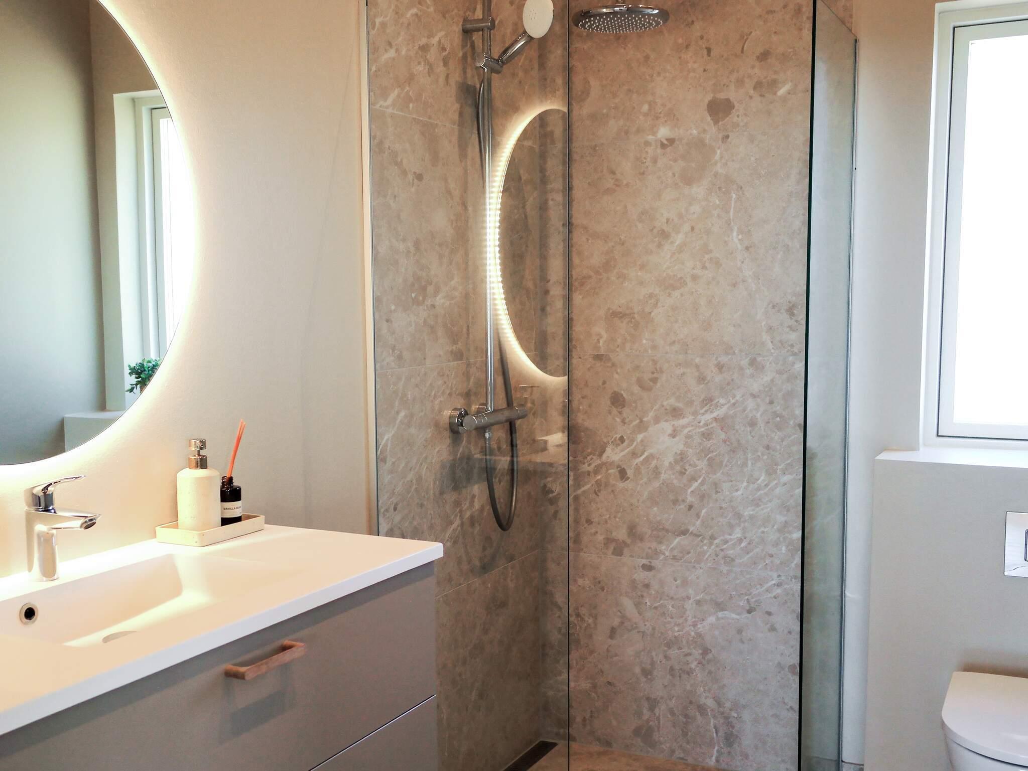 Udenfor breder de åbne marker sig, og indendørs mødes I af en stilfuld, nordisk indretning, der kombinerer lys, luft og komfort. Find jer godt til rette omkring det store spisebord, hvor frokosten nydes med udsigt til landskabet, eller slå jer ned i den bløde hjørnesofa med en bog eller et brætspil. Gennem de store vinduespartier strømmer dagslyset ind og skaber en helt særlig stemning i opholdsrummet.