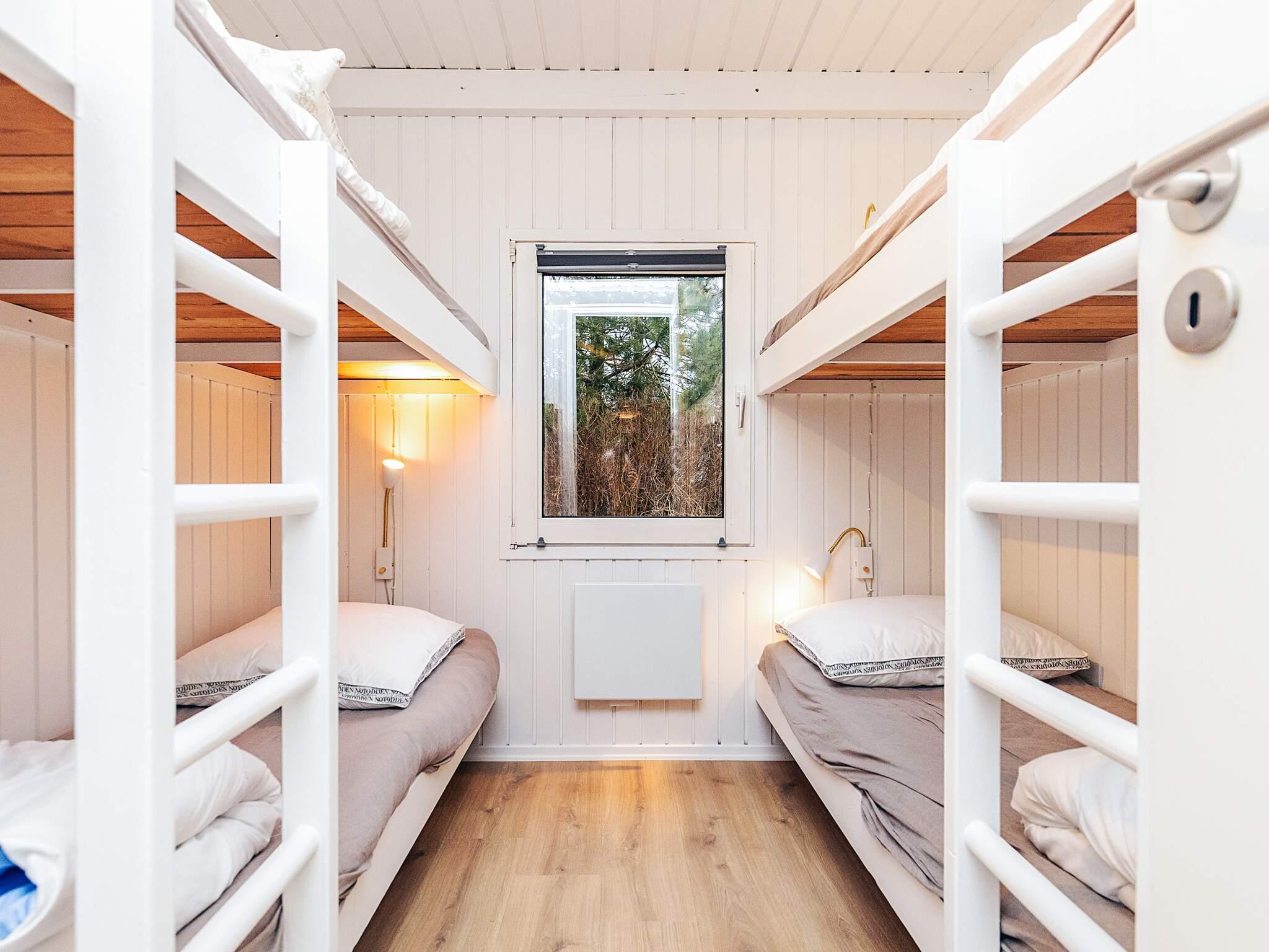 Der er fire soveværelser samt to hemse. Der er to badeværelser med wc, håndvask, bruseniche og gulvvarme. I finder saunaen ved det ene badeværelse.