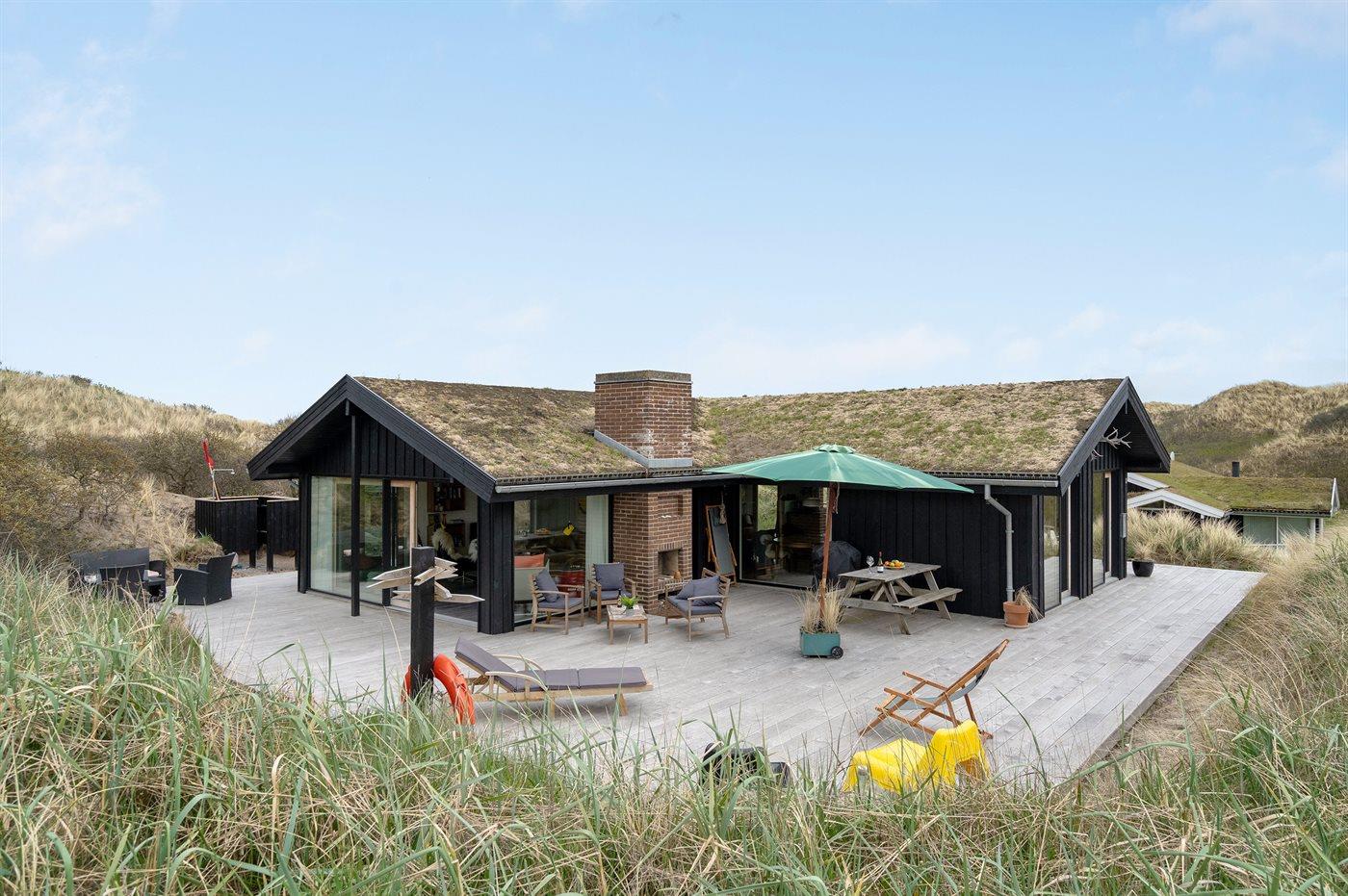 Skønt beliggende sommerhus i yderste klitrække til Vesterhavet på en meget stor kuperet grund i et pragtfuldt, naturskønt ferieområde. Fra grunden er der udsigt til havet, og på terrasserne er der gode læmuligheder.
