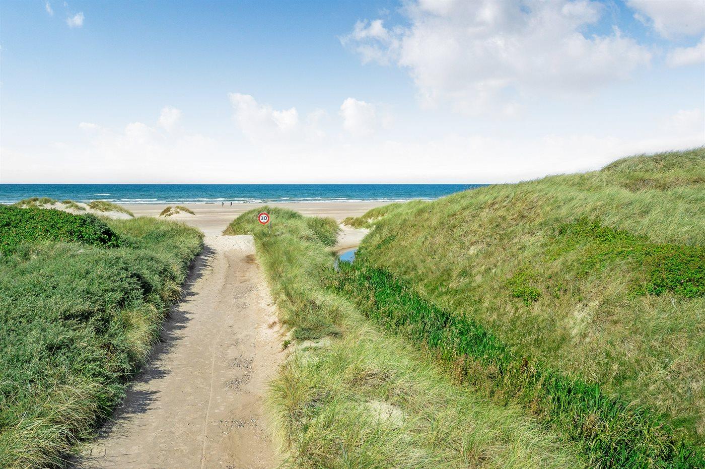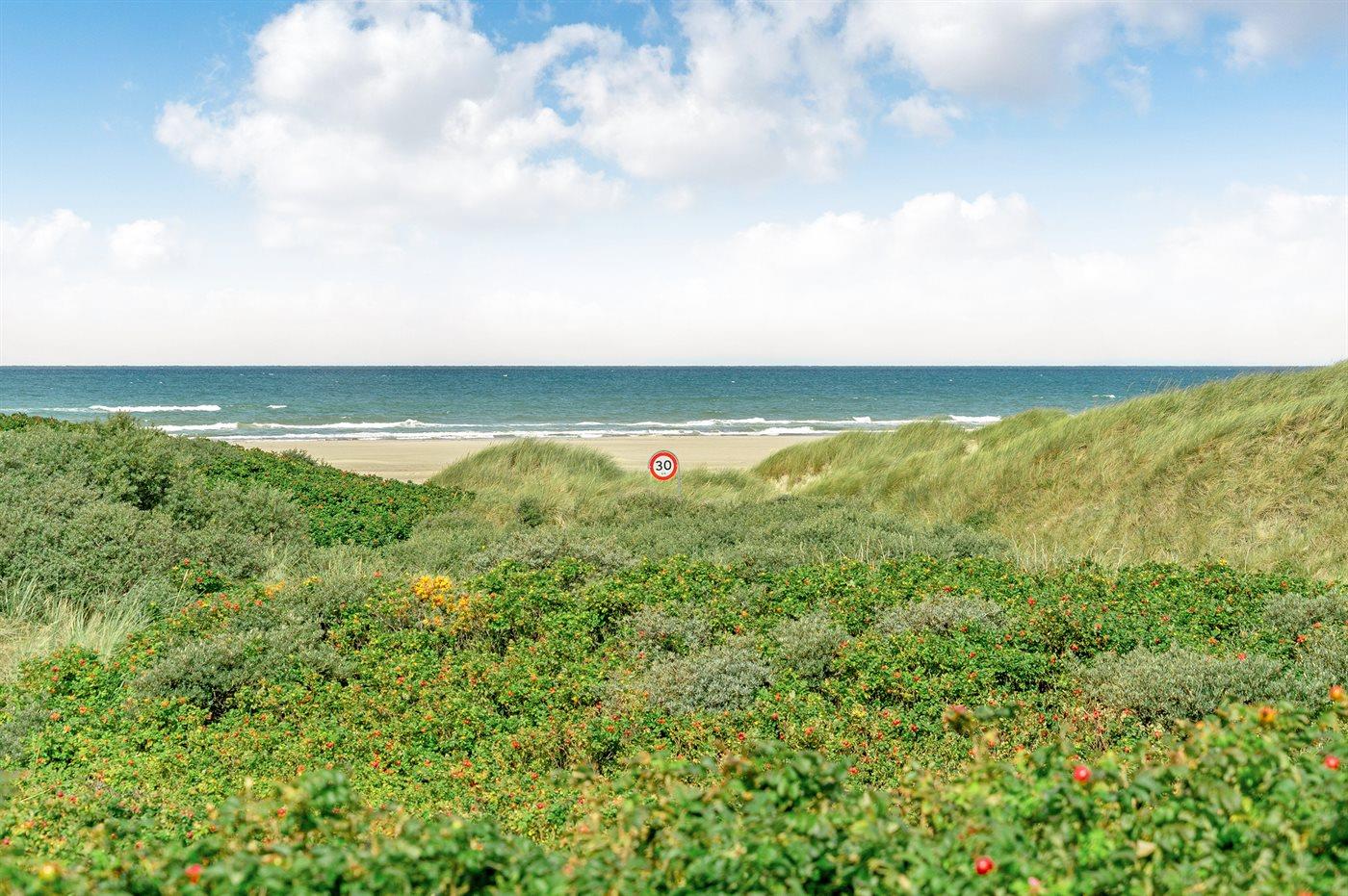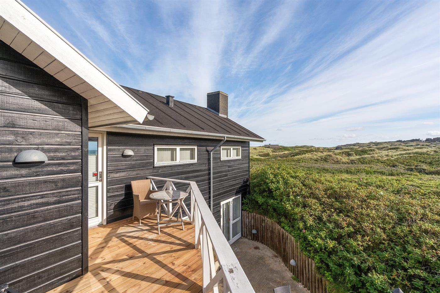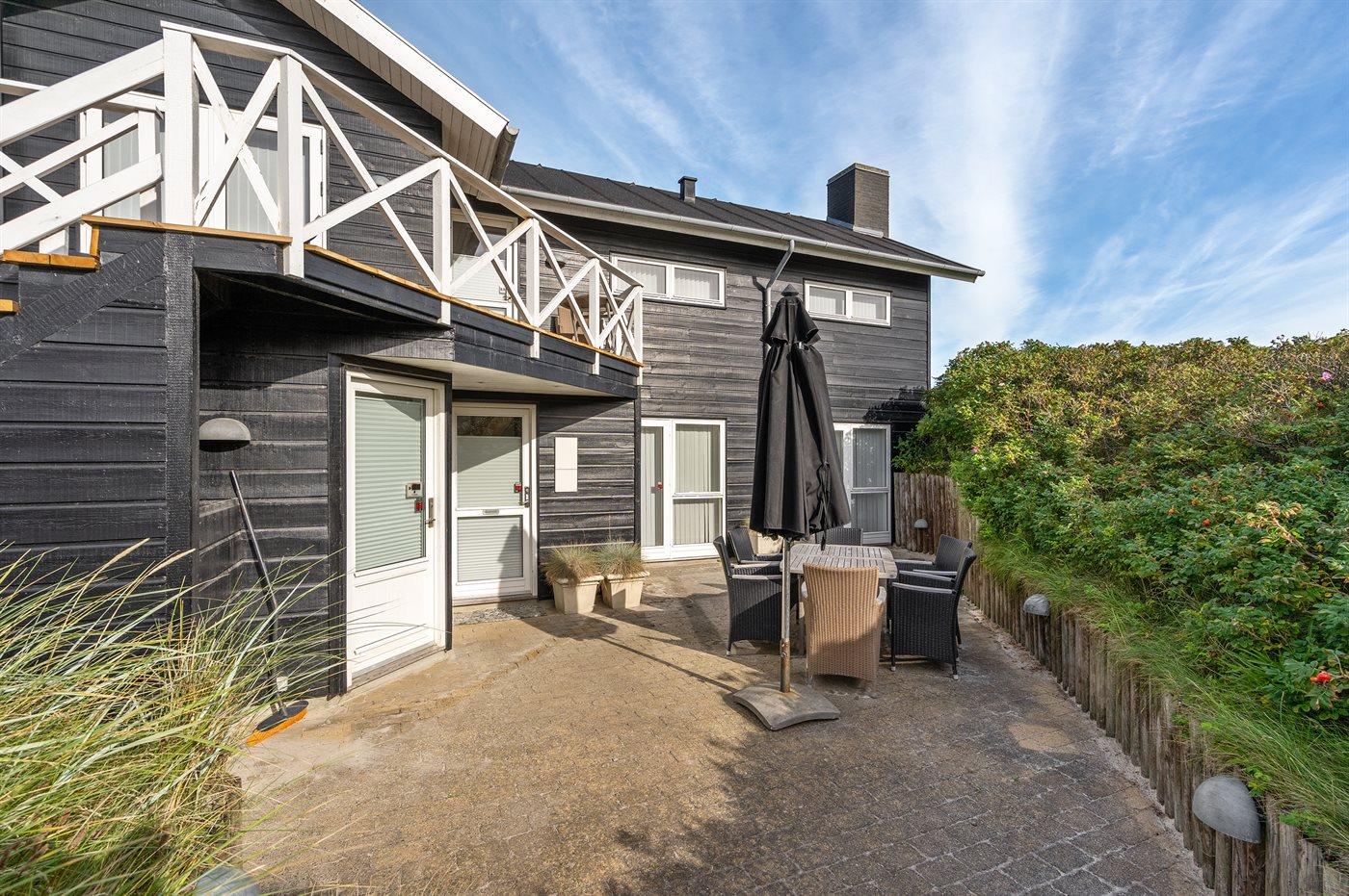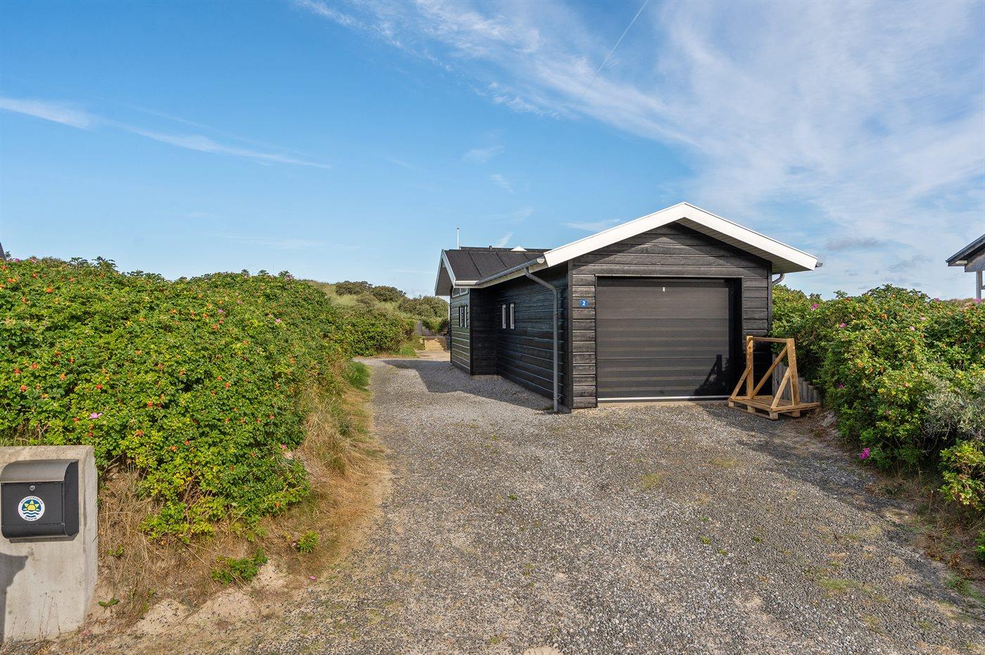 Ferieboligen er beliggende på en 5648 m² stor klitgrund. Der er 100 m til havet. Nærmeste forretning er beliggende i en afstand af 4000 m. Til ferieboligen hører 30 m² terrasseareal. Desuden er der 8 m² overdækket terrasse. Udgang til solgård. Der er redskabsrum. Der er installeret stik til opladning af elbil.