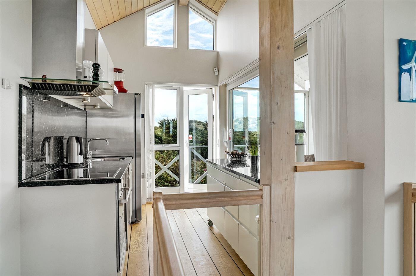 Køkkenet er udstyret med 1 amerikansk køleskab. Der er 4 keramiske kogeplader, varmluftovn, mikrobølgeovn samt opvaskemaskine.