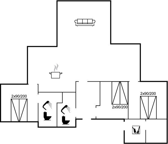 Der er 2 badeværelser med bruseniche og 2 toiletter. Der er gulvvarme på 2 badeværelser.