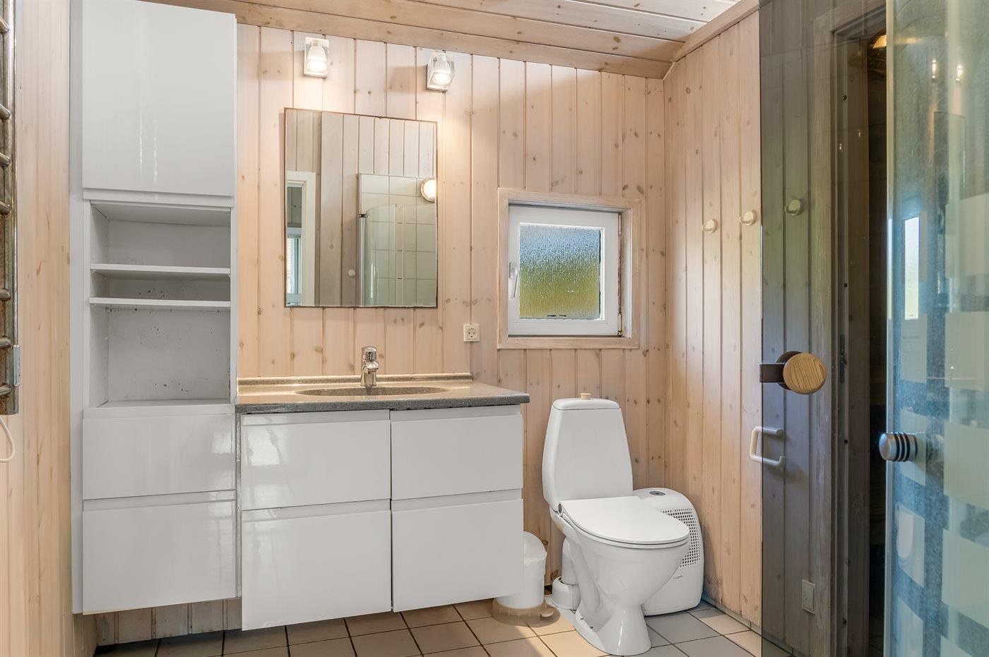 Der er 2 badeværelser med bruseniche og 2 toiletter. Der er gulvvarme på 2 badeværelser. I saunaen er der mulighed for afslapning.