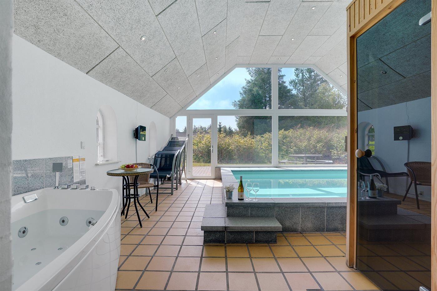 I den indendørs swimmingpool er der mulighed for leg og hyggeligt samvær. Swimmingpoolen måler op til 3,5 m i bredden, 4,6 m i længden og den er op til 1,5 m dyb. Vandet er mellem 24 og 28° C varmt.