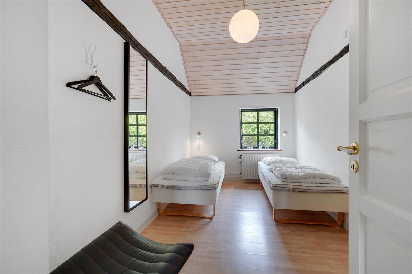 Der er i alt 5 soveværelser. Sovepladserne fordeler sig på: 6 sovepladser i enkeltsenge.6 sovepladser i elevationssenge. 2 sovepladser på madrasser. 4 af disse sovepladser fordeler sig på husets 3 hemse og et repos.