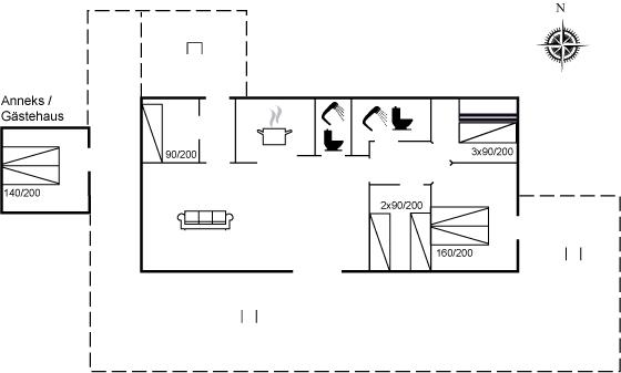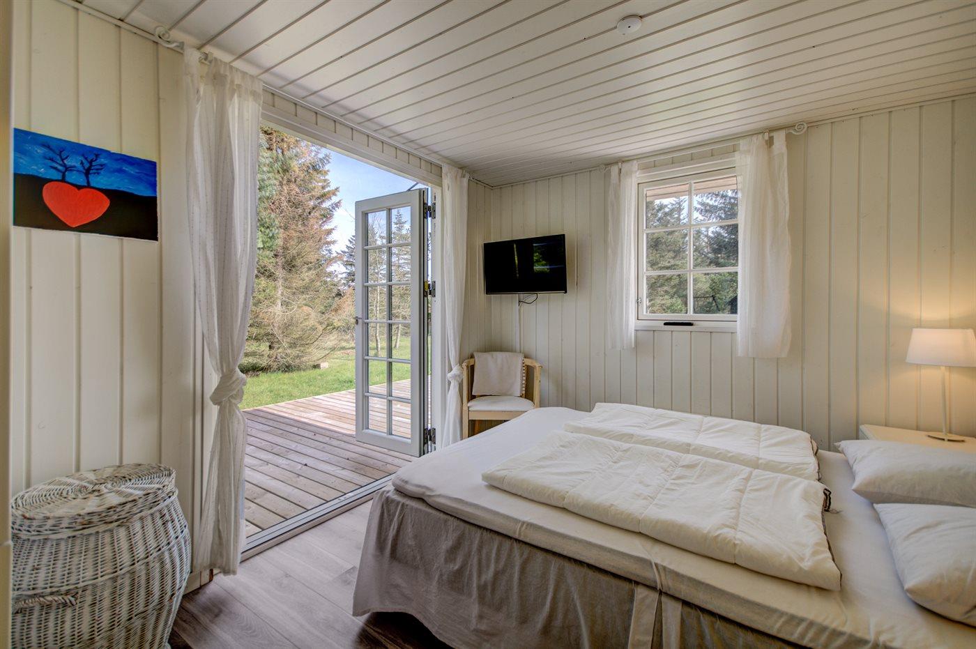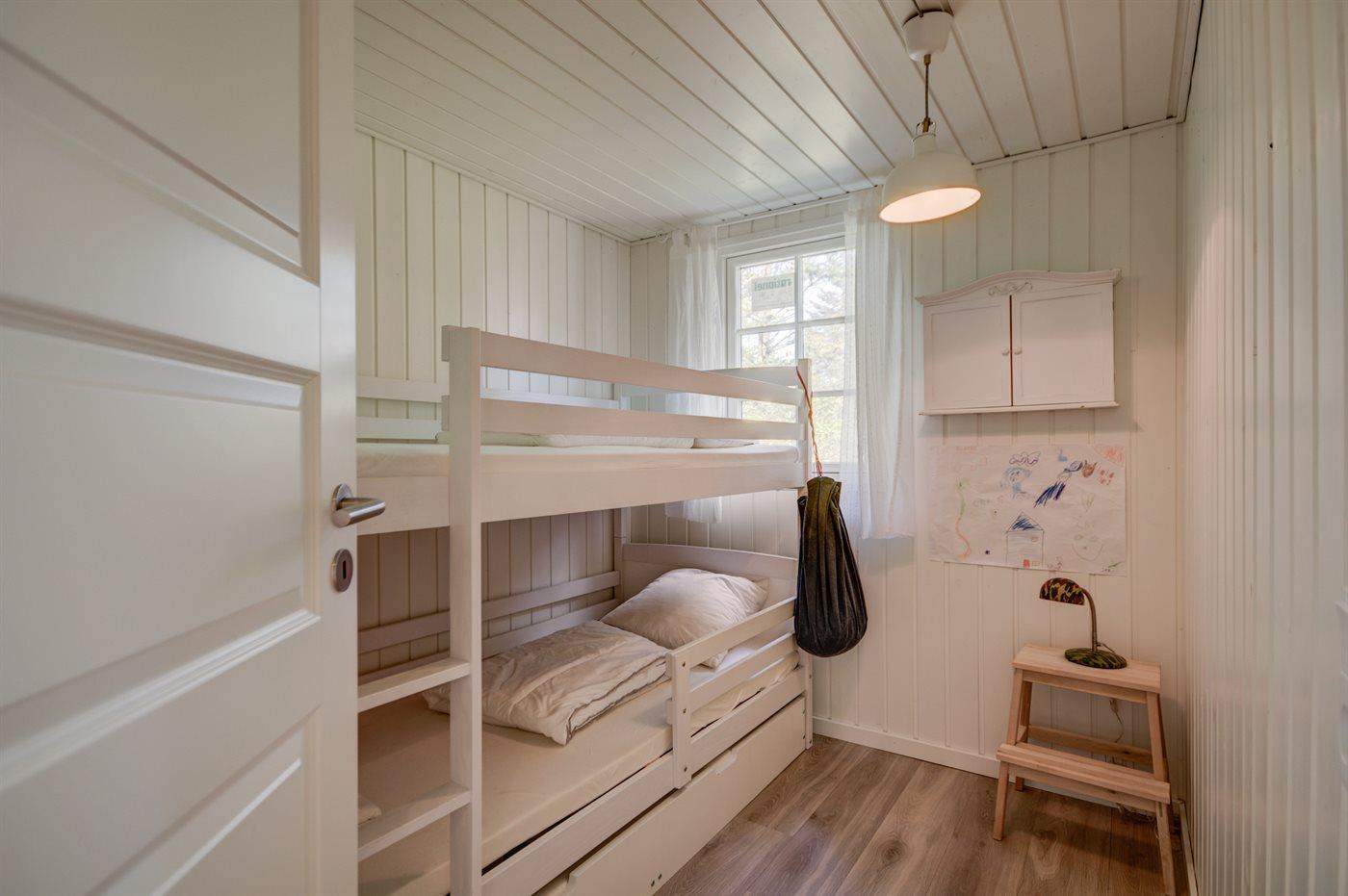 Der er i alt 5 soveværelser. Sovepladserne fordeler sig på: 4 sovepladser i dobbeltsenge. 3 sovepladser i enkeltsenge. 3 sovepladser i køjesenge. 2 af disse sovepladser befinder sig i et anneks. Derudover er der 1 stk. barneseng.
