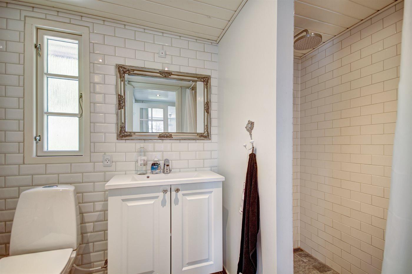 Der er 2 badeværelser med bruseniche og 2 toiletter. Der er gulvvarme på 2 badeværelser.