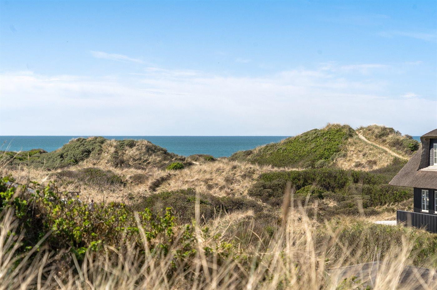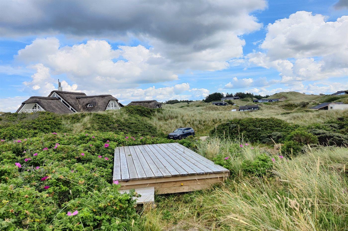 Huset ligger på en lukket vej og via en sti gennem klitterne for enden af vejen når du den skønne badestrand på få minutters gang.
