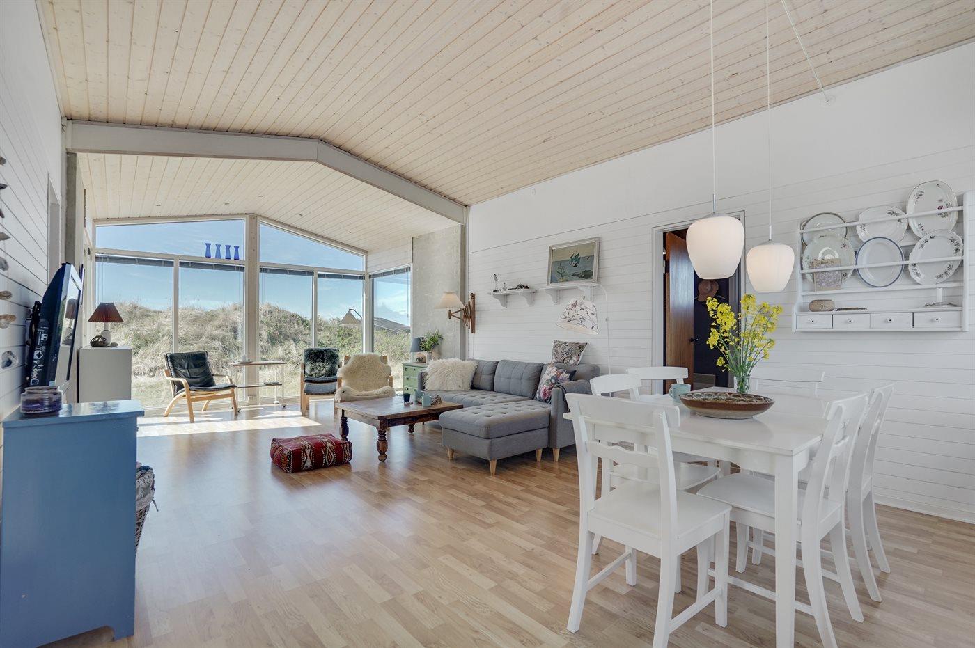 Dette idylliske sommerhus fra 1959 er vedligeholdt i den oprindelige klassiske stil. Huset er højt beliggende på en 2218 m2 åben og skøn natur-/klitgrund omgivet af rigtig vesterhavsnatur med marehalm, havtorn og hybenroser, og med blot 200 meter til den vidunderlige 150 meter brede badestrand.