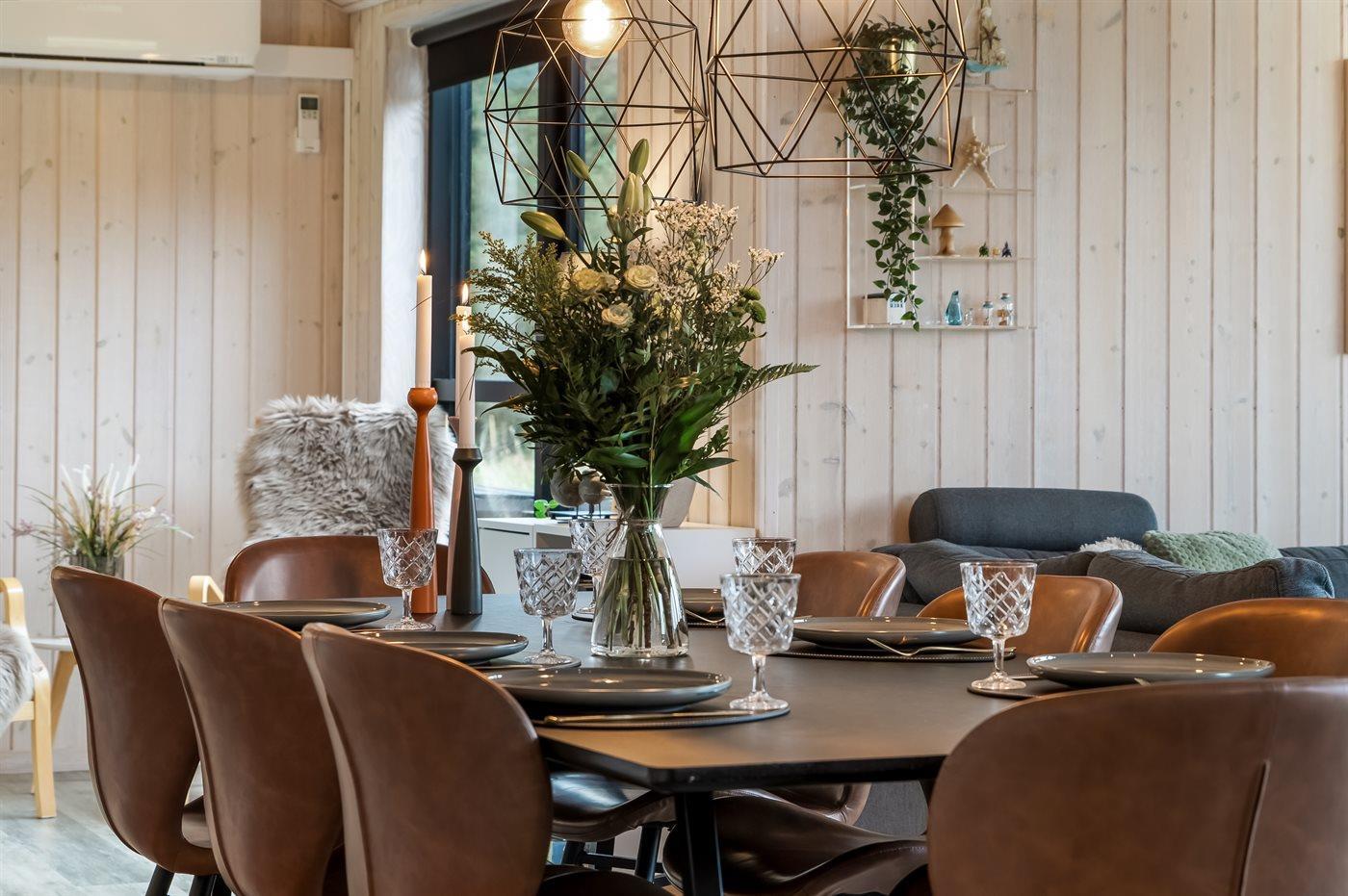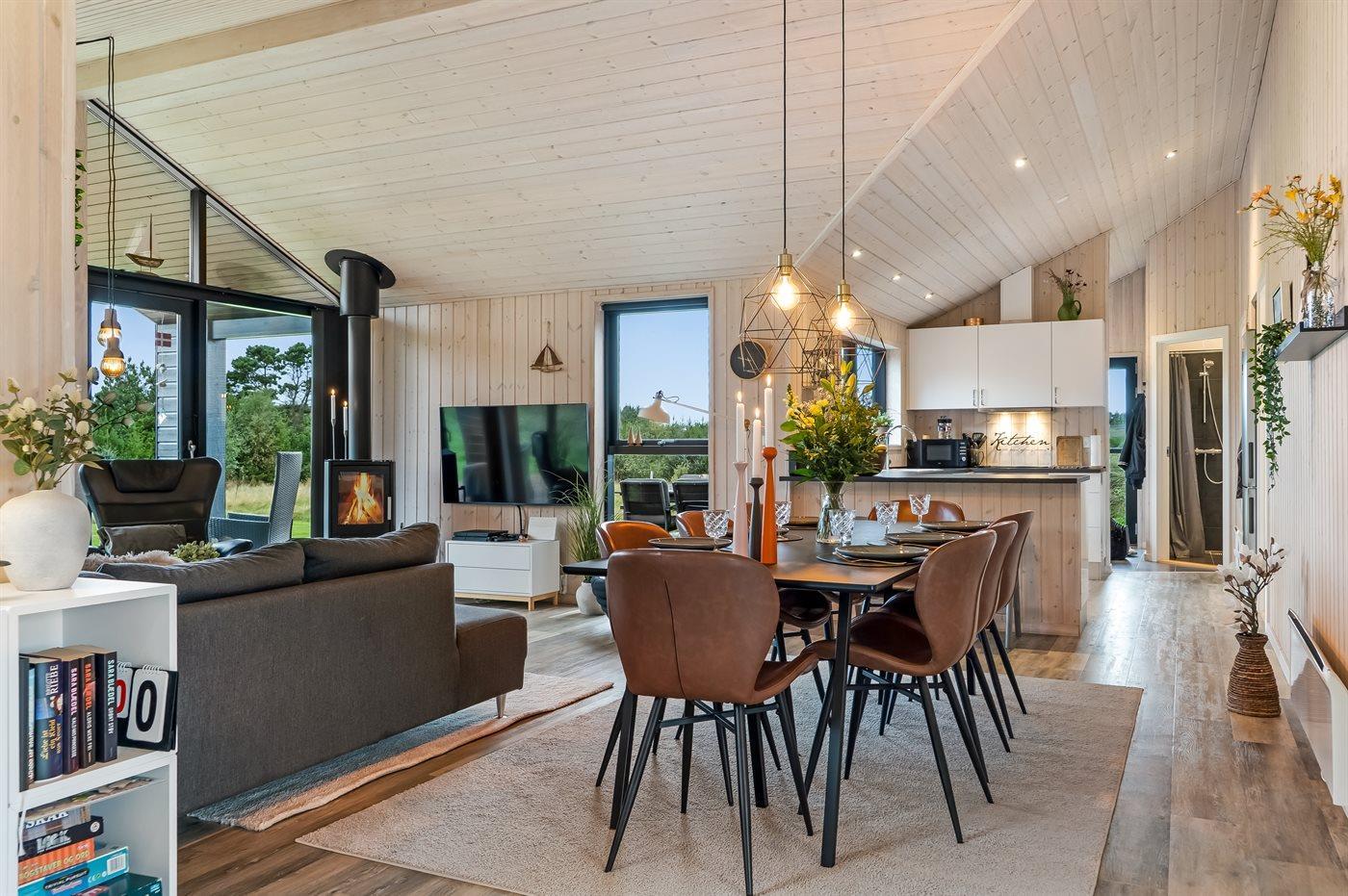 Sommerhuset egner sig til 8 personer samt 1 barn op til 3 år. Ferieboligen er på 120 m² og er bygget i 2017. Det er tilladt at medbringe 1 husdyr. Ferieboligen er udstyret med energibesparende varmepumpe. Ferieboligen har vaskemaskine. Tørretumbler. Frysekapacitet på 90 liter. Der er desuden brændeovn. Til de små er der 1 stk. barnestol.