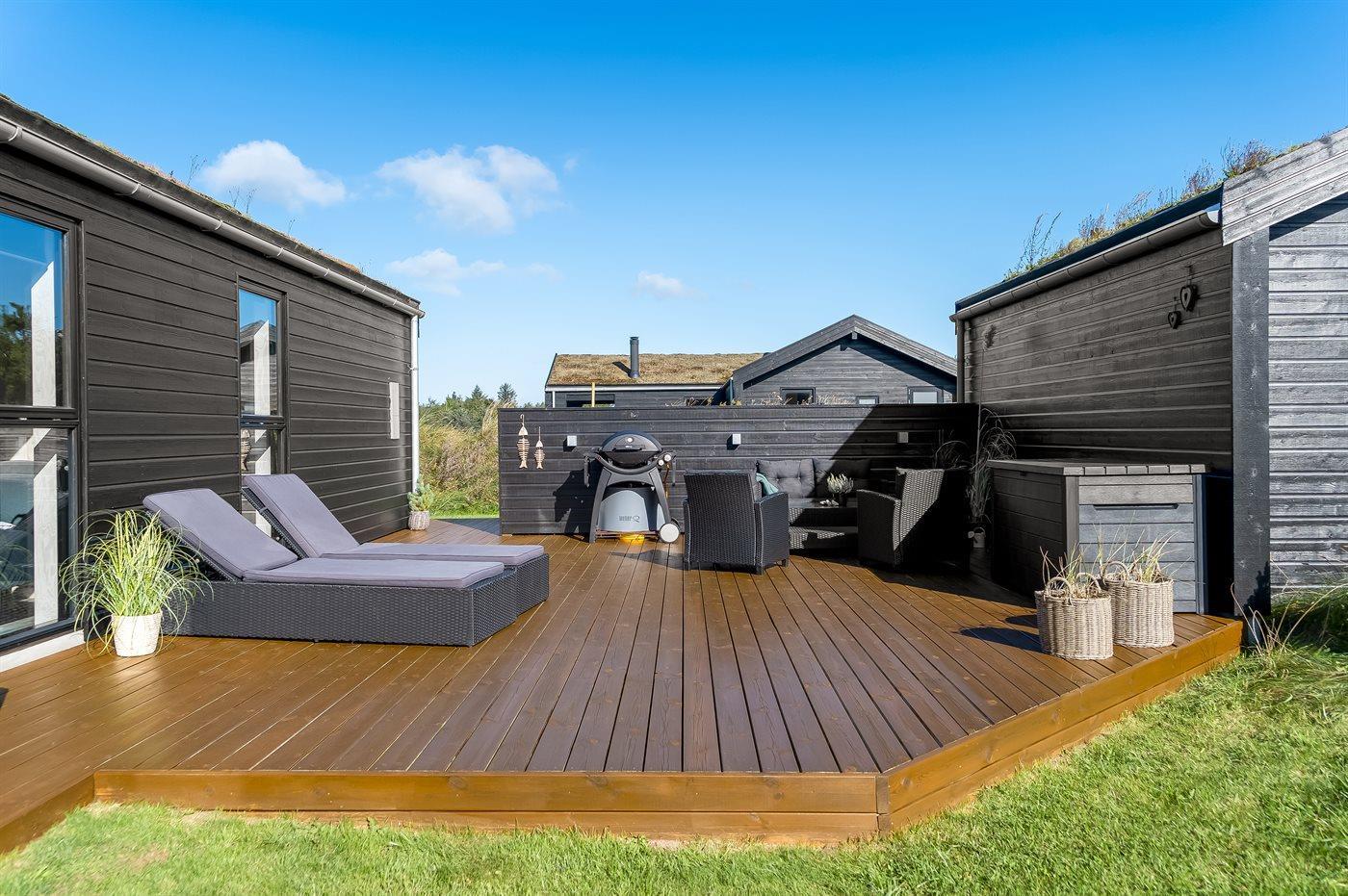 Ferieboligen er beliggende på en 2500 m² stor naturgrund. Der er 1400 m til havet. Nærmeste forretning er beliggende i en afstand af 1800 m. Til ferieboligen hører 90 m² terrasseareal. Desuden er der 10 m² overdækket terrasse. Gynge. Legetårn. Rutchebane. Fodboldmål. Grill til rådighed. Parkering ved ferieboligen.