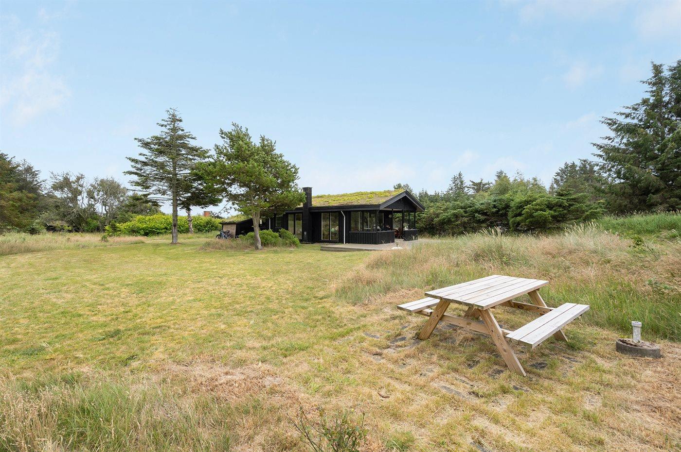 Ferieboligen er beliggende på en 2050 m² stor naturgrund. Der er 1300 m til havet. Nærmeste forretning er beliggende i en afstand af 700 m. Til ferieboligen hører 40 m² terrasseareal – heraf er i alt 20 m² lukket. Shelter. Grill til rådighed. Parkering ved ferieboligen.