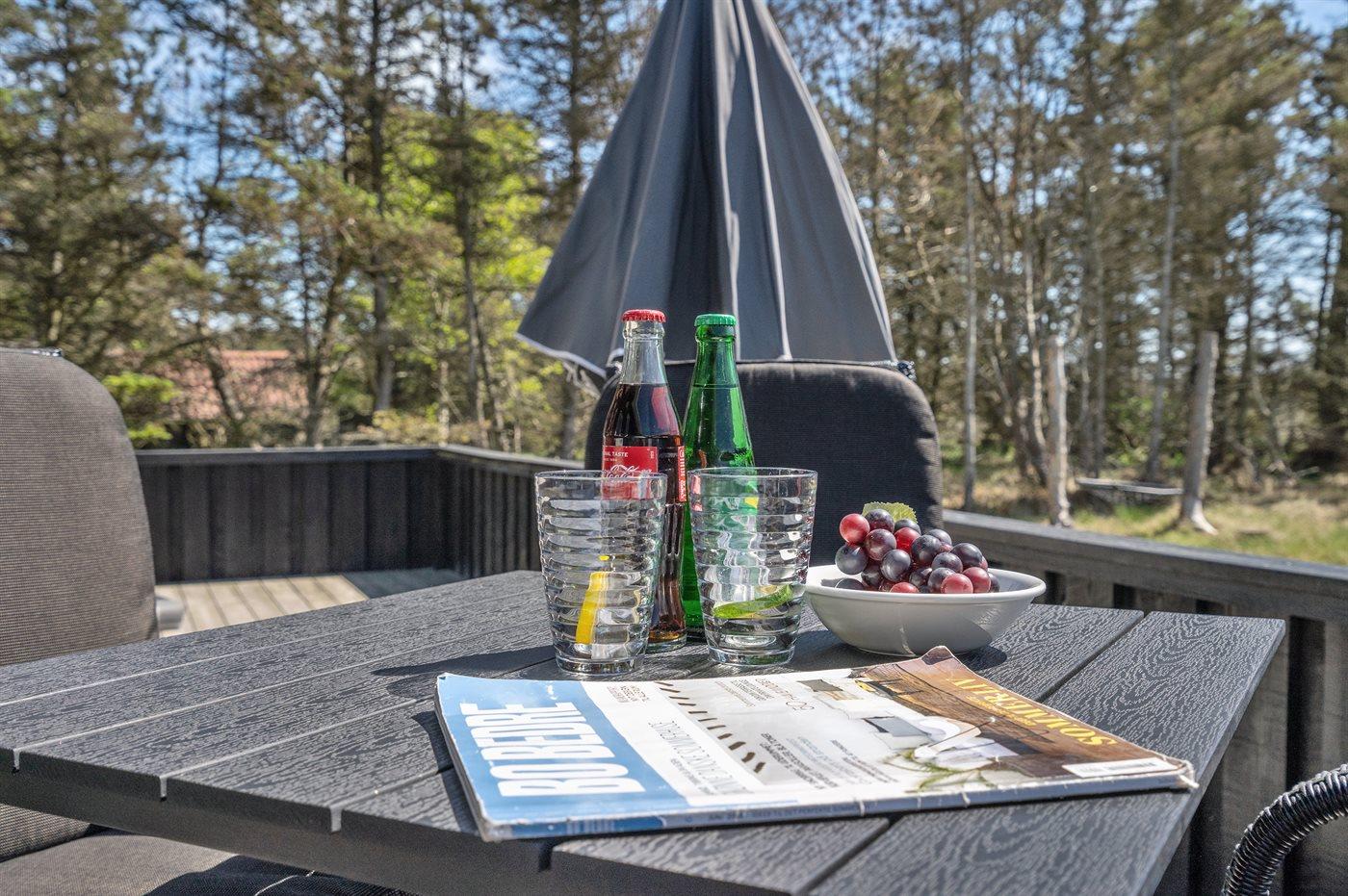 Ferieboligen er beliggende på en 2000 m² stor naturgrund. Der er 950 m til havet. Nærmeste forretning er beliggende i en afstand af 4000 m. Desuden er der 8 m² overdækket terrasse. Gynge. Fodboldmål. Grill til rådighed. Parkering ved ferieboligen.