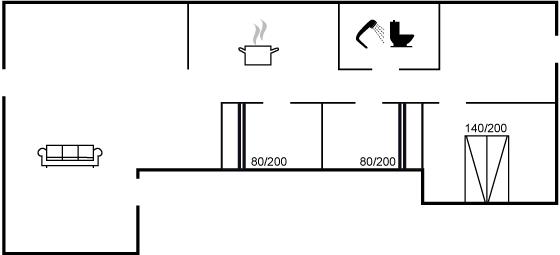 Der er i alt 3 soveværelser. Sovepladserne fordeler sig på: 2 sovepladser i dobbeltseng. 4 sovepladser i køjesenge.