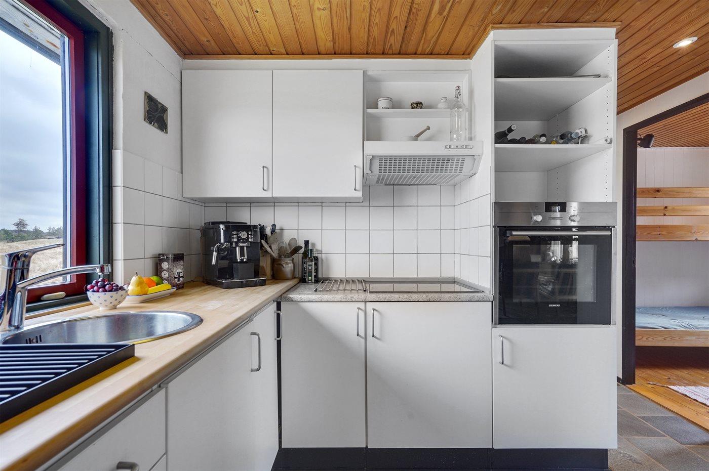 Køkkenet er udstyret med 1 køleskab. Der er 4 keramiske kogeplader, varmluftovn samt opvaskemaskine.