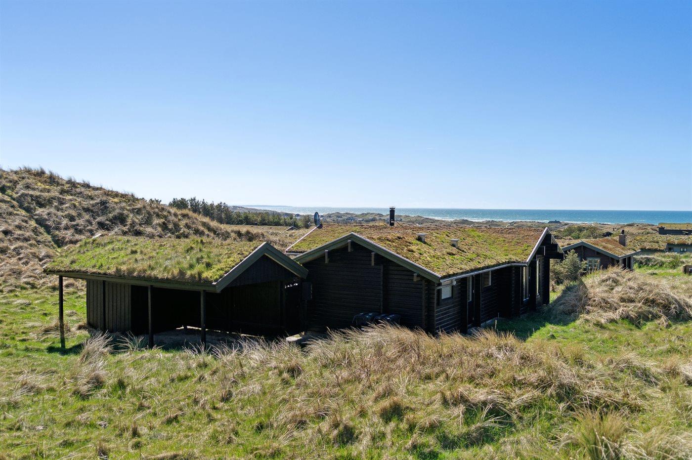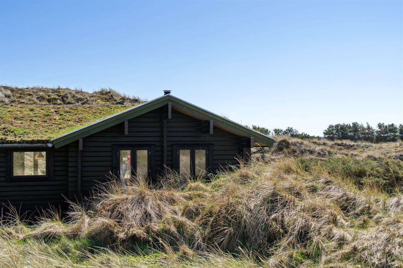 Sommerhuset er lige sådan, som et klassisk sommerhus skal være med træbeklædt facade, græs på taget og en idyllisk placering midt i det uspolerede klitlandskab. Den enkle og rustikke stil går igen inde i huset, hvor der er træ på gulve, vægge og lofter og et charmerende interiør, som sætter fine rammer om ferieturens hyggelige samvær. Køkkenet ligger i åben forbindelse med stuen, som har lysindfald fra tre verdenshjørner – og ikke mindst en flot udsigt til Vesterhavet fra de store vinduespartier.