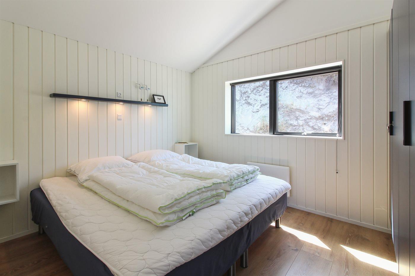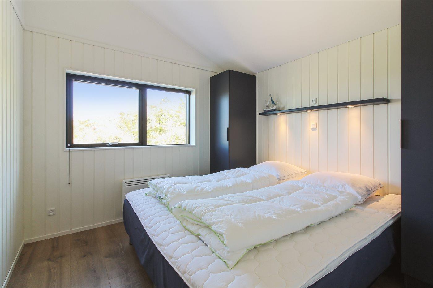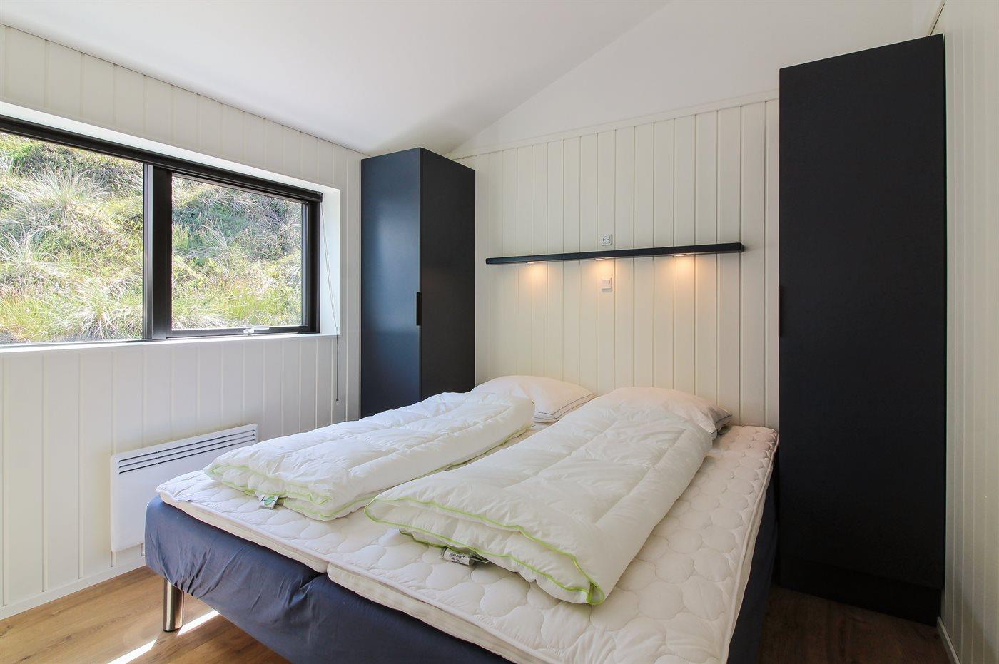 Der er i alt 4 soveværelser. Sovepladserne fordeler sig på: 2 sovepladser i dobbeltseng. 6 sovepladser i enkeltsenge.1 soveplads i køjeseng. Derudover er der 1 stk. barneseng.