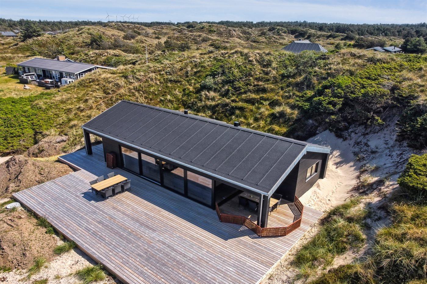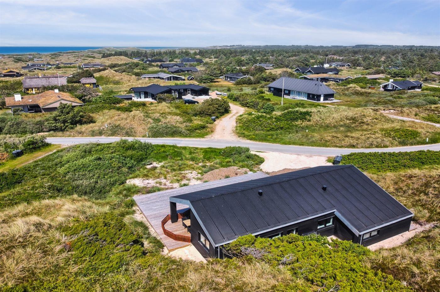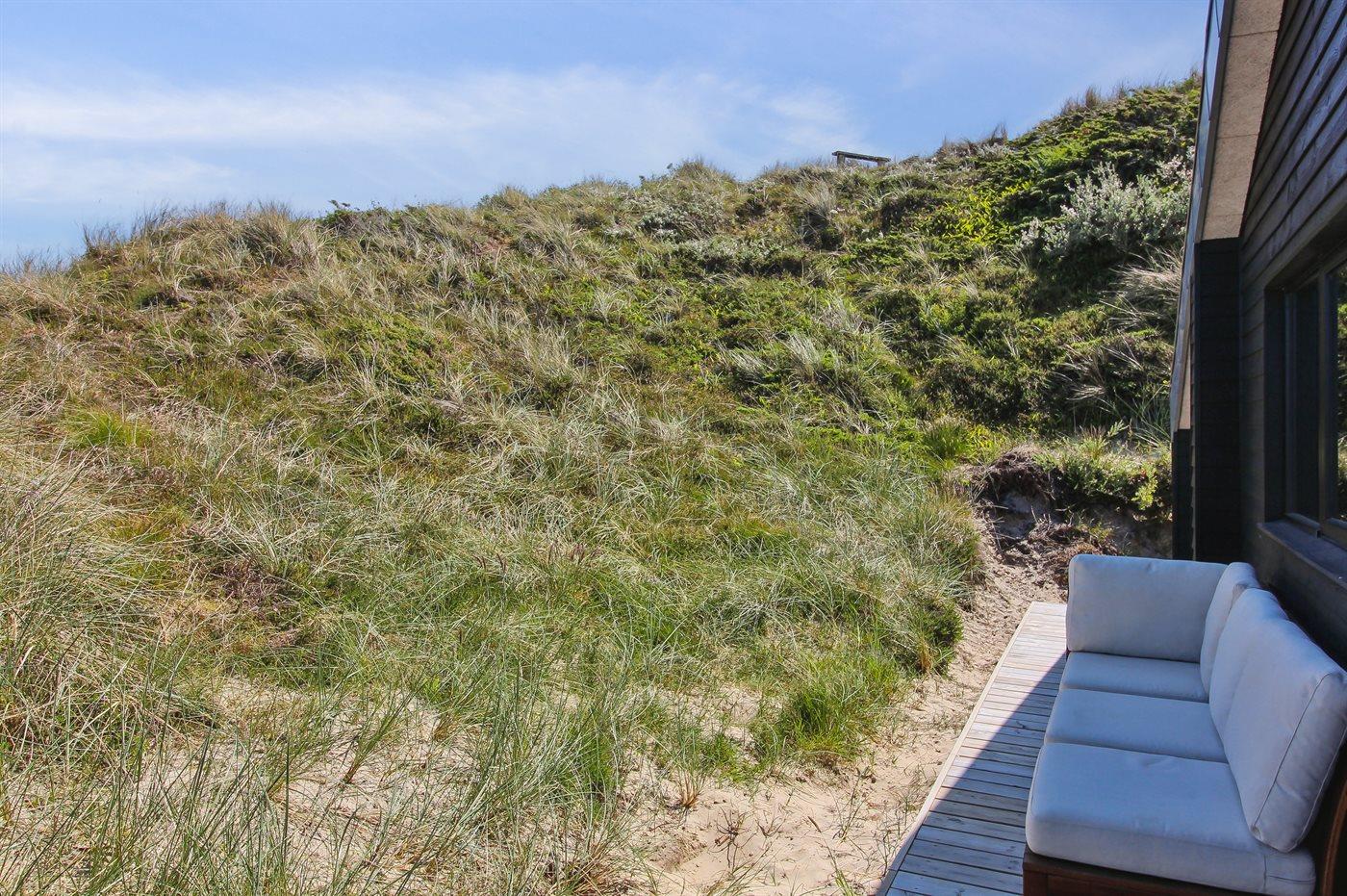 Ferieboligen er beliggende på en 2200 m² stor klitgrund. Der er 500 m til havet. Nærmeste forretning er beliggende i en afstand af 3000 m. Der er en golfbane i en afstand af 12000 m. Til ferieboligen hører 70 m² terrasseareal. Desuden er der 20 m² overdækket terrasse. Der er redskabsrum. Grill til rådighed. Parkering ved ferieboligen.