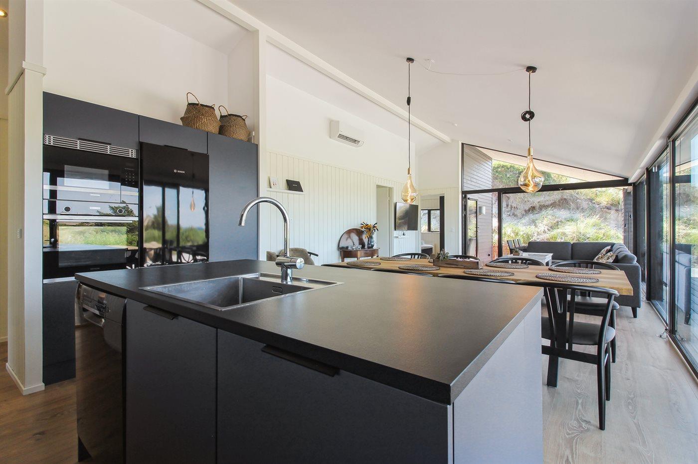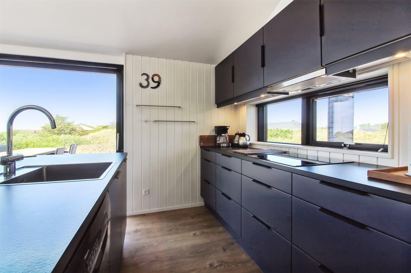 Køkkenet er udstyret med 1 køleskab. Der er 4 induktionskogeplader, varmluftovn, mikrobølgeovn samt opvaskemaskine.
