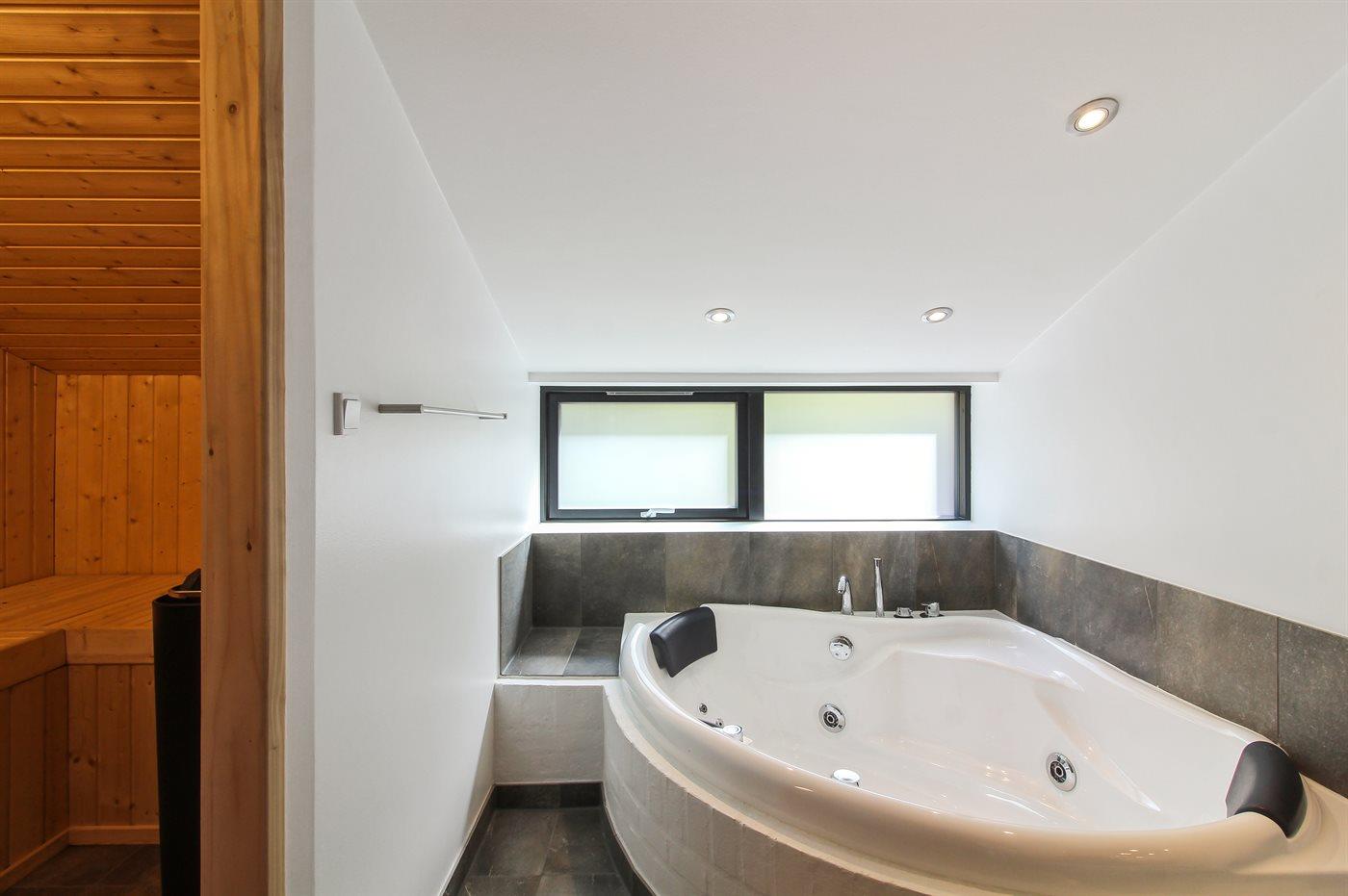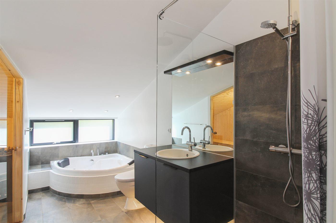 Der er 2 badeværelser med bruseniche og 2 toiletter. Der er gulvvarme på 2 badeværelser. I saunaen er der mulighed for afslapning.