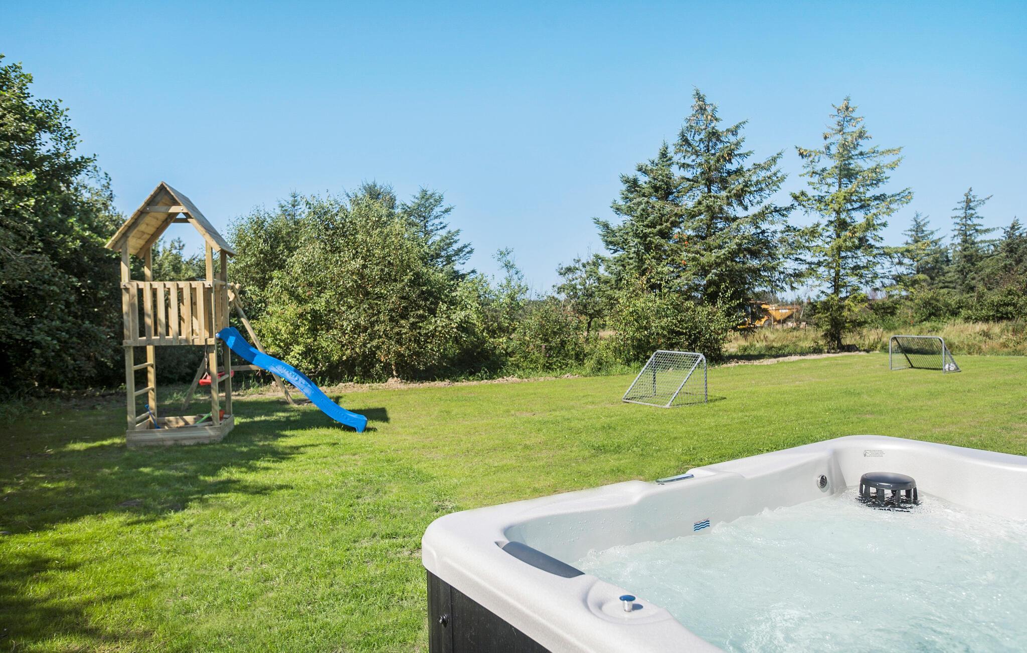 På terrassen kan I nyde et glas vin, mens børnene hygger sig med de mange udendørsaktiviteter haven byder på. I kan også tage en tur i spaen eller saunaen, når der skal forkæles lidt ekstra. Bagefter kan I gøre klar til, at grille og nyde aftensmaden ude i det fri.