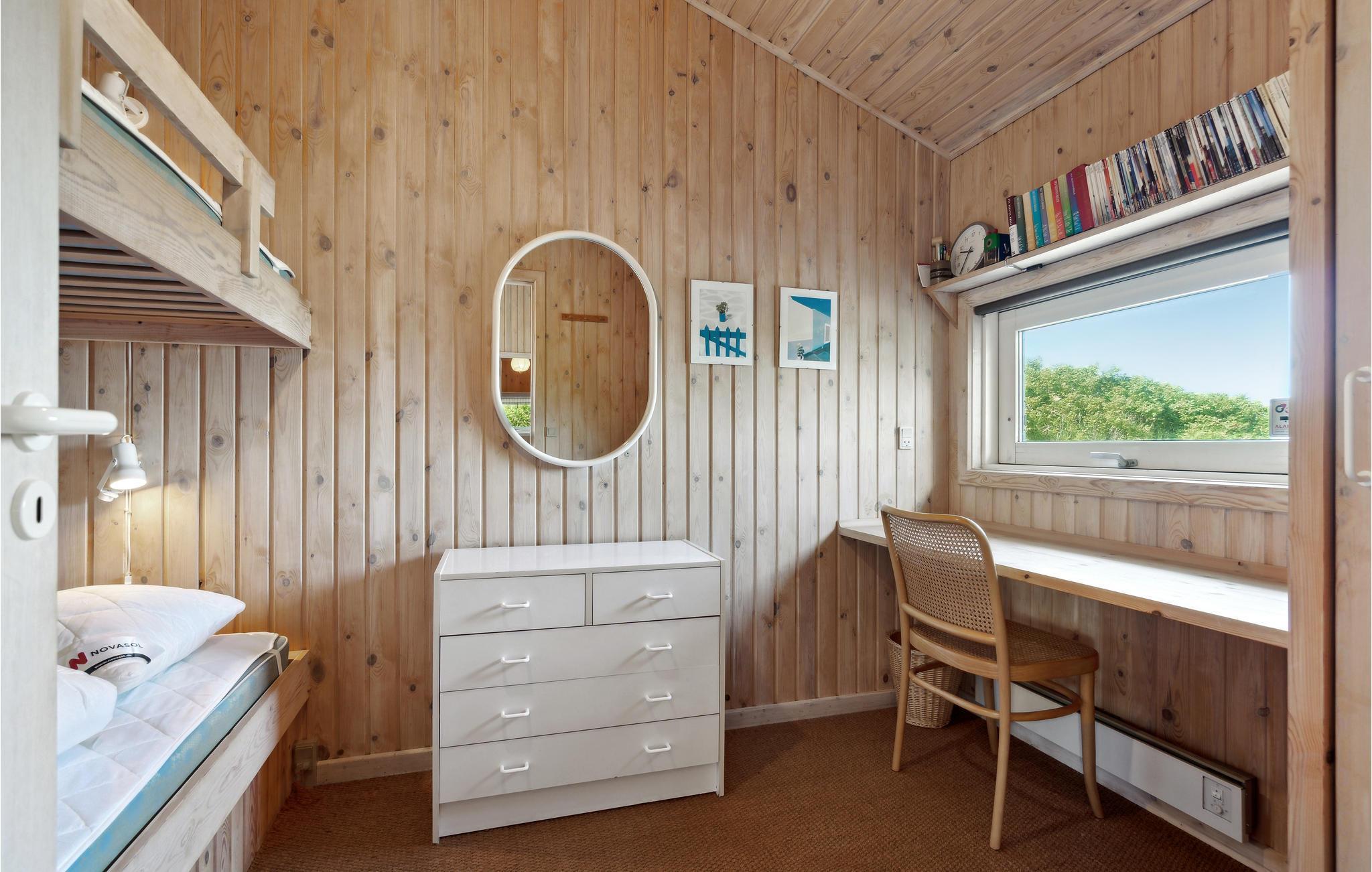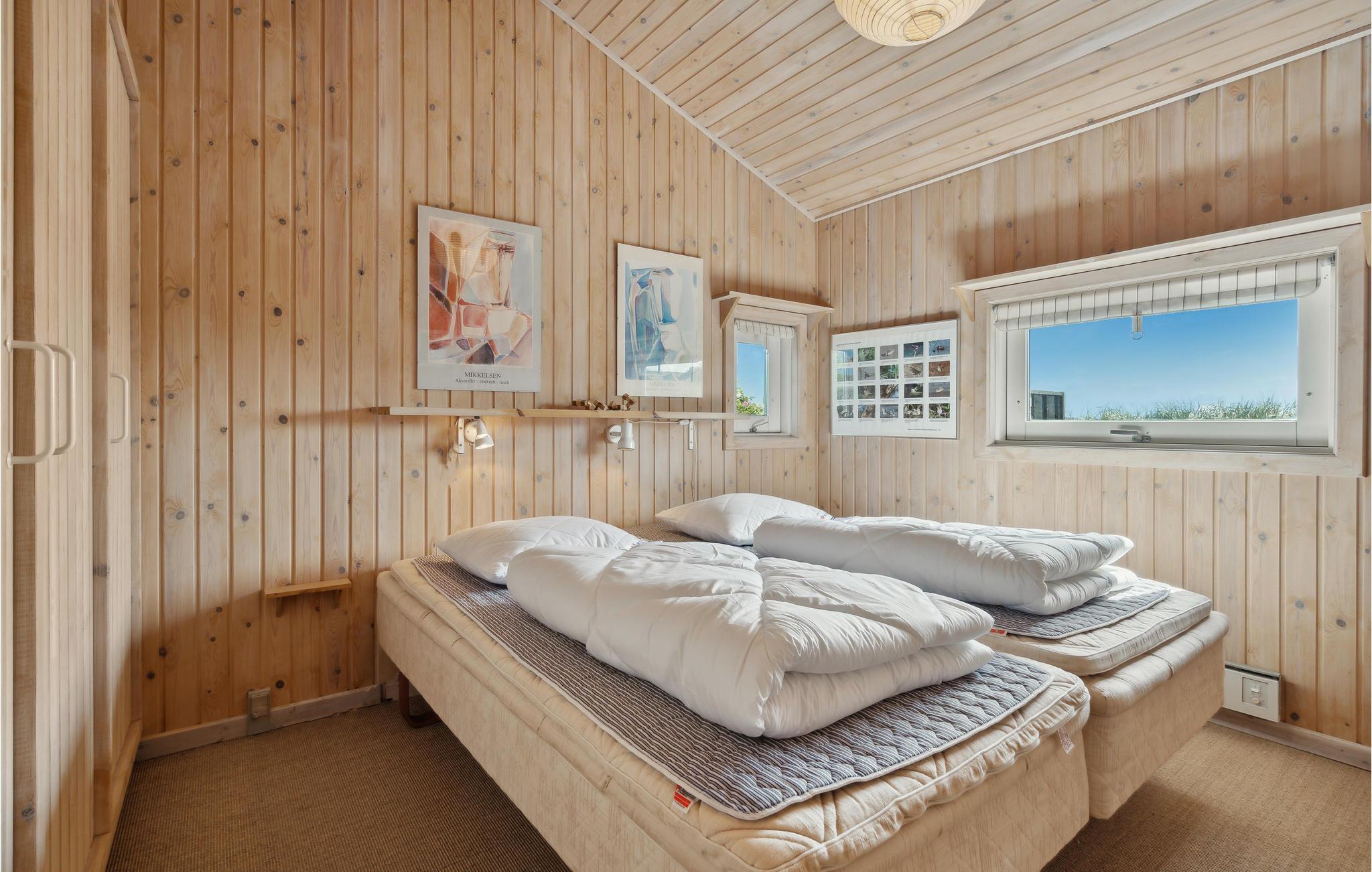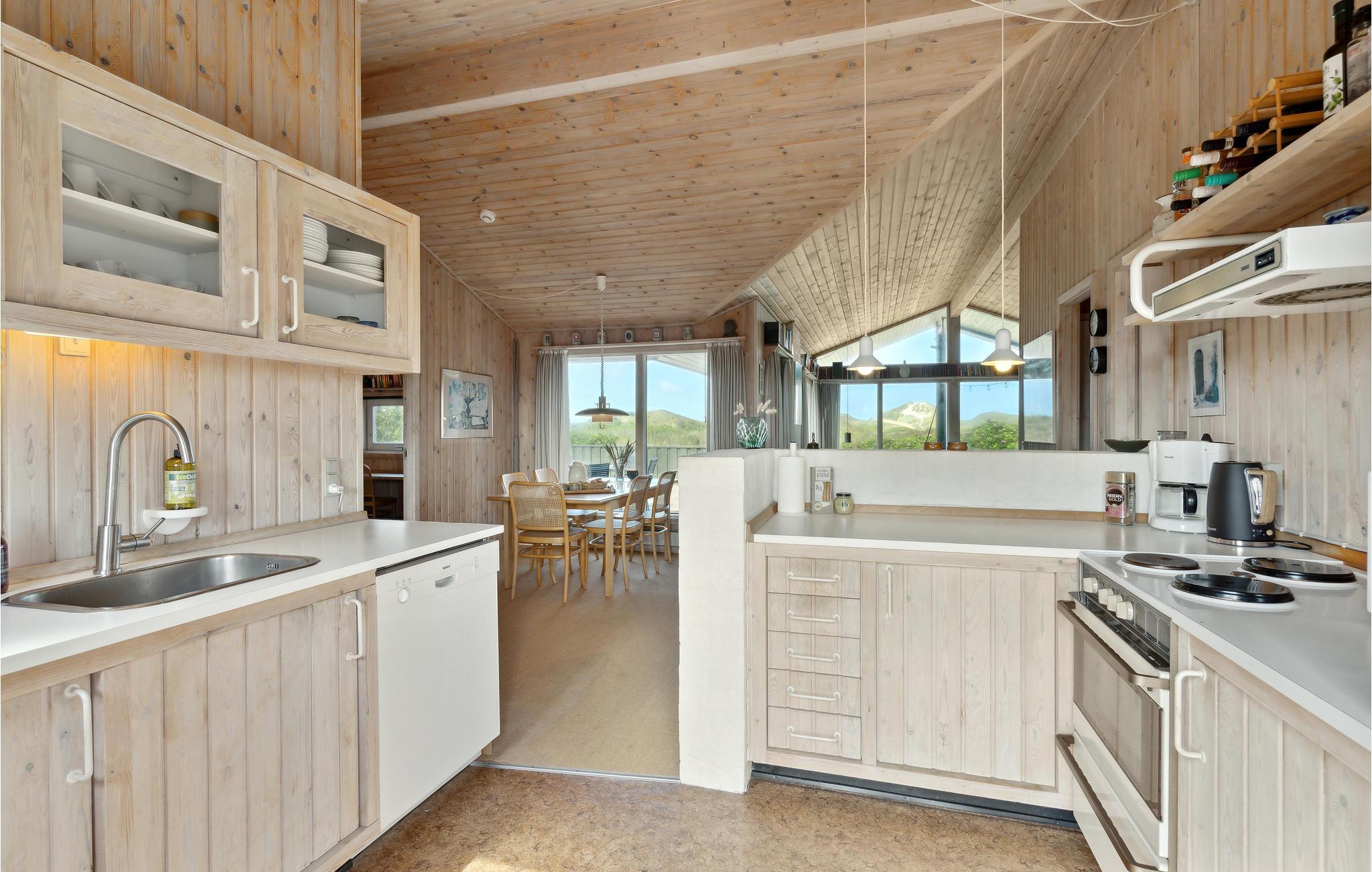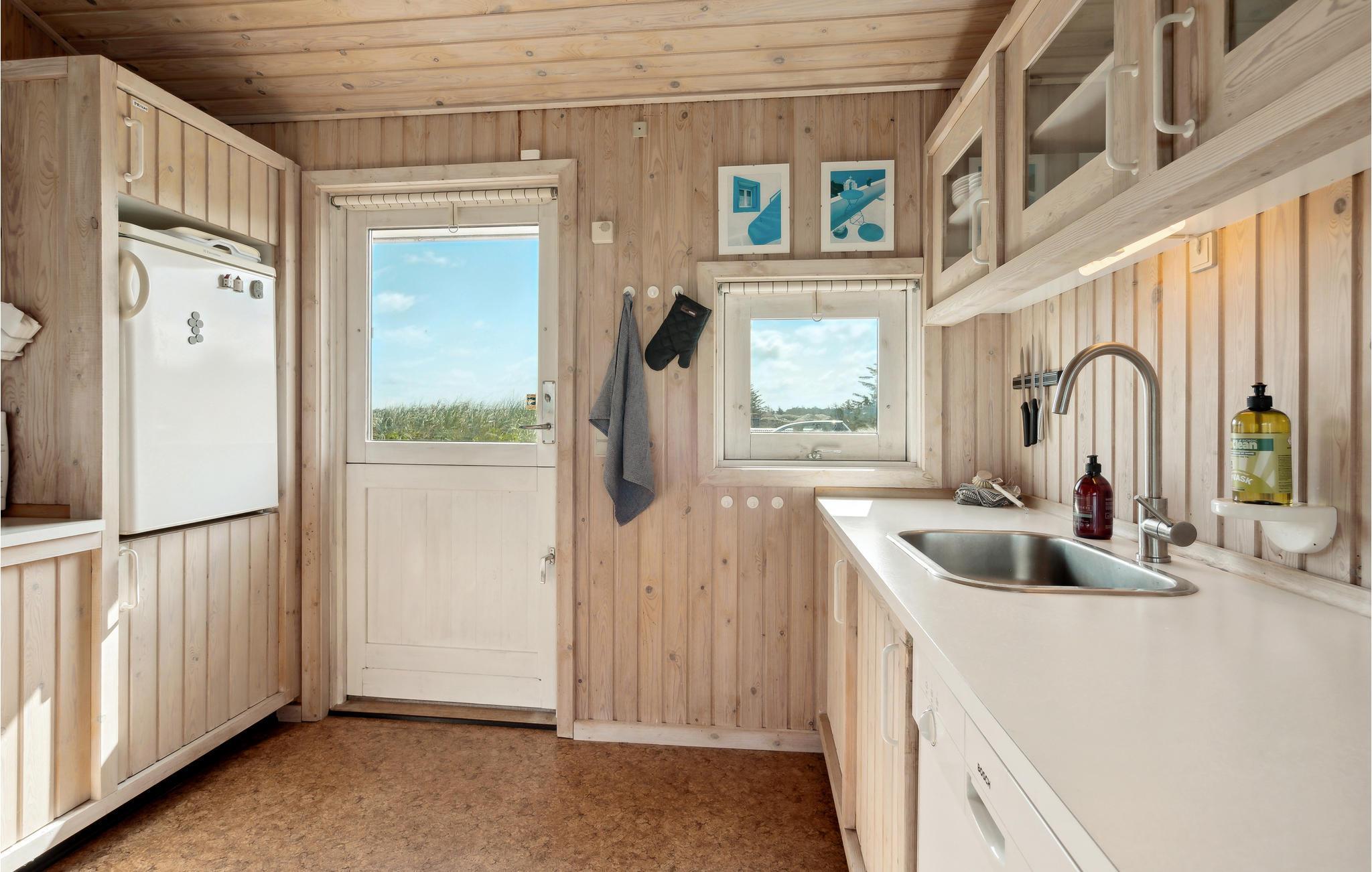 Længes I efter det brusende Vesterhav og hyggelige spilleaftener nær den knitrende brændeovn? Så har I fundet den perfekte bolig til årets sjove familieferie. Det hyggelige olivengrønne hus byder på klassisk sommerhuscharme og lyse træpaneler, der formår at skabe en beroligende atmosfære, hvor I kan føle jer hjemme og nyde udsigten over klitlandskabet gennem de store vinduer. Efter dagens aktiviteter kan I grille på den store terrasse, der løber rundt om huset, og herfra nyde udsigten og den smukke solnedgang. Gå op ad stien gennem klitterne til stranden. Den brede sandstrand, som også er åben for biler, giver jer masser af plads til at bygge sandslotte, bade og flyve med drager.