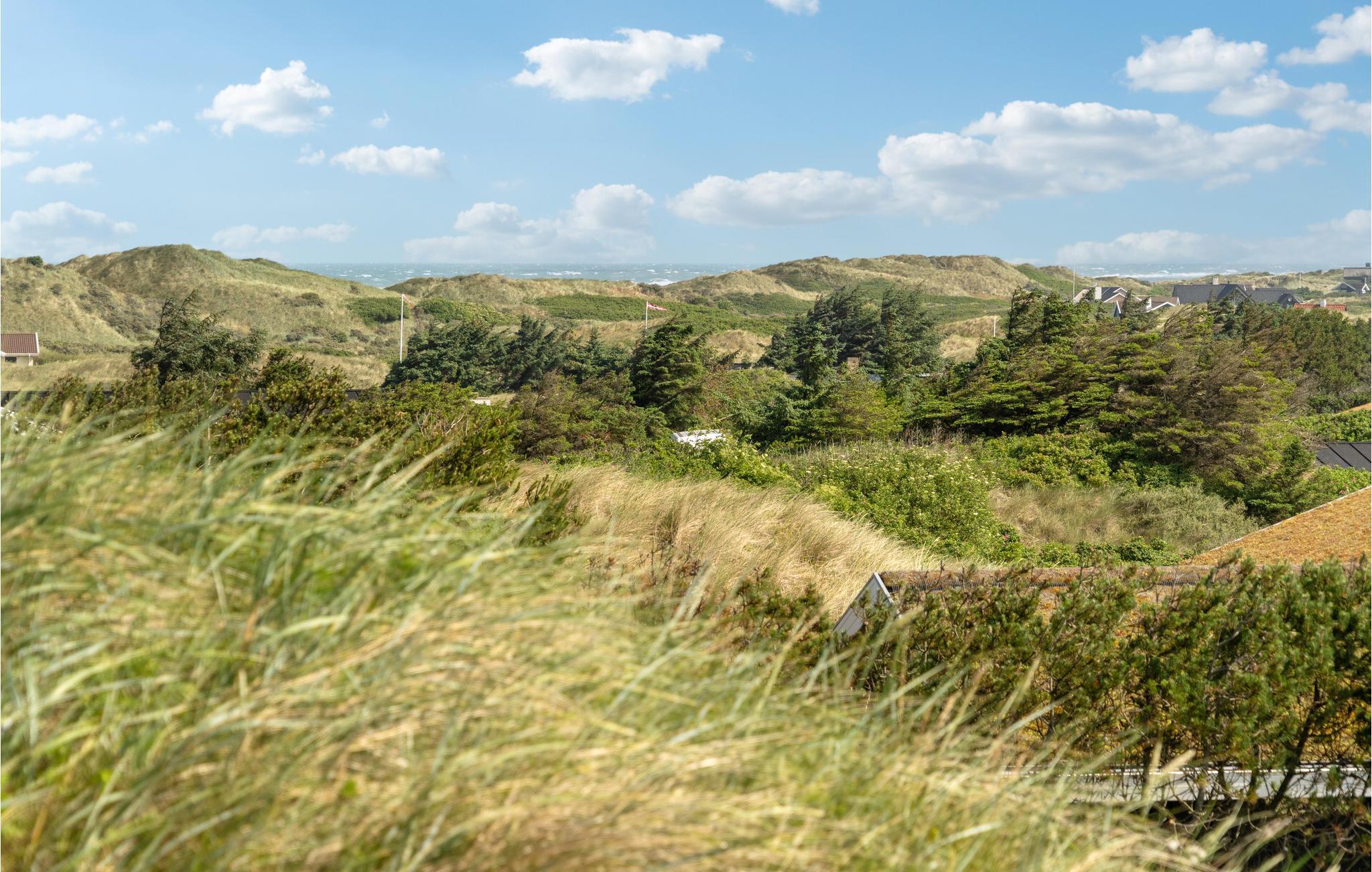 Hyggeligt træhus i Saltum Strand med havudsigt, stor terrasse og vildmarksbad nær Vesterhavet.
