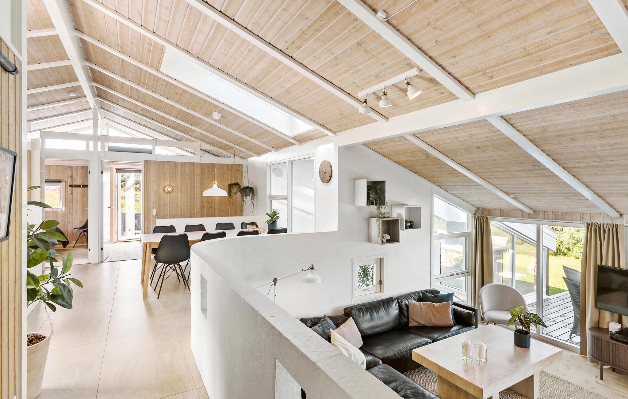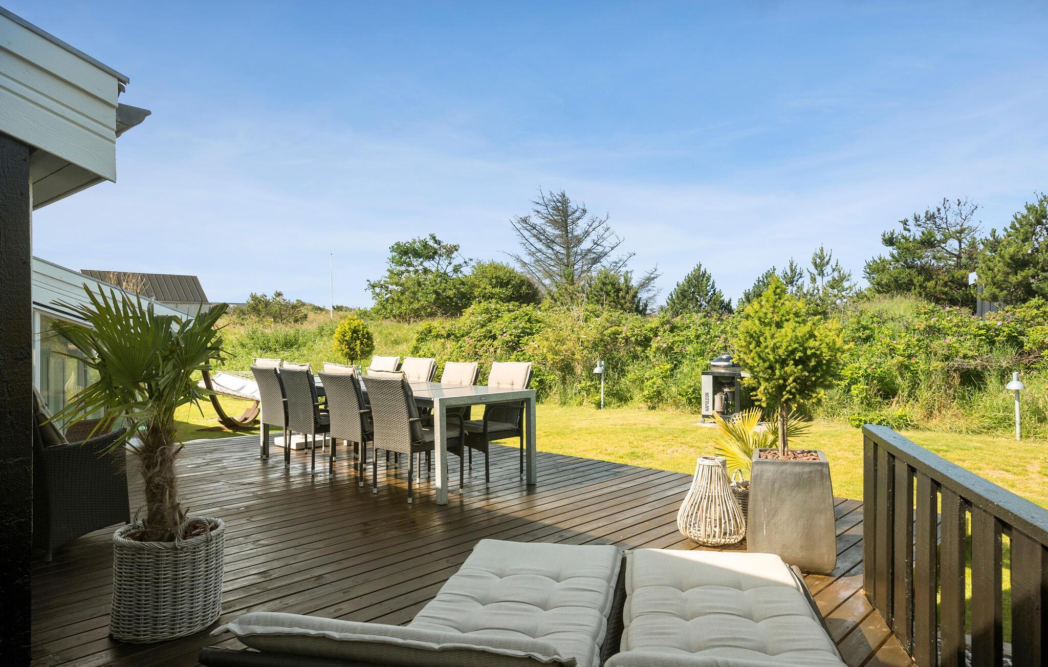 Hyggeligt feriehus nær Vesterhavet med moderne komfort, pool, sauna og flere terrasser til afslapning.