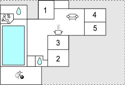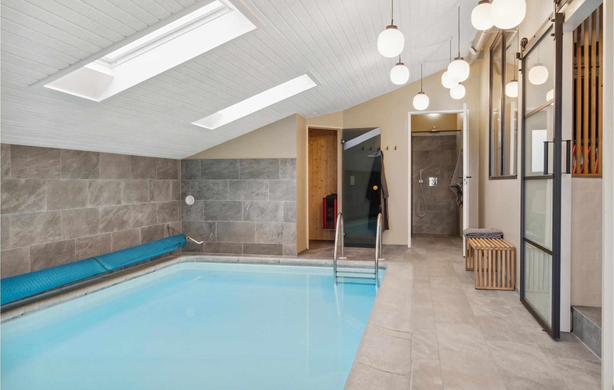 På en dejlig klitgrund få minutters gang fra Vesterhavet og med en fantastisk udsigt til havet og klitterne fra en bakketop på grunden, har dette skønne feriehus en perfekt beliggenhed. Det er bygget i forskudte plan. I træder ind i et lille bryggers og derfra direkte ind i den lyse poolafdeling med muret spabad og indgang til sauna og badeværelse. Fra poolrummet går I et par trin op til den hyggelige spiseafdeling, der ligger i forbindelse med et mindre, men fuldt udstyret køkken. For enden af rummet er der en hyggelig stue med behagelige møbler. Huset har loft til kip og trægulve på værelserne og resten af huset har opvarmede klinkegulve. Der hører dejlige såvel overdækkede som åbne træterrasser til huset.