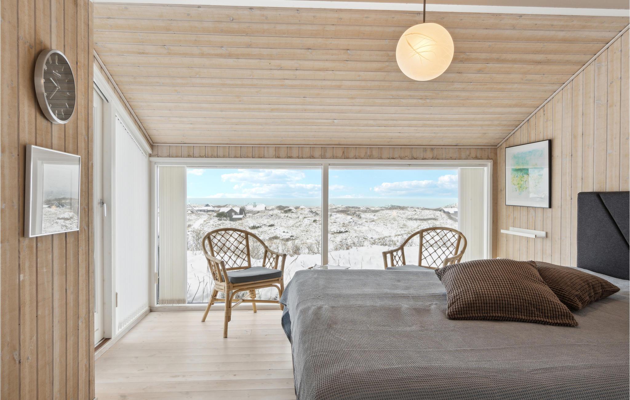 Velkommen til dette eksklusive feriehus i Saltum Strand, som giver jer et helt vidunderligt panorama over klitlandskab og det store Vesterhav. Huset emmer af lys, komfort og feriestemning, og der er alle de faciliteter, I skal bruge for at slappe af, når I vender hjem efter en strandtur. Læn jer tilbage og nyd en hyggelig aften i sofaerne, mens ilden knitrer i brændeovnen. Snup et spil kort eller brætspil ved spisebordet og lad blikket vandre over landskabet igen og igen.