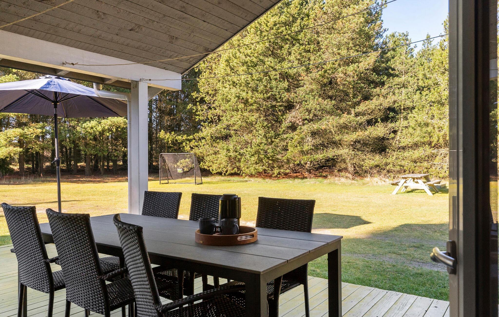 Ved den utrolige gode og brede sandstrand ligger dette pragtfulde område med imponerende klitformationer, der har givet det navnet 'Lille Norge'. På en stor grund omkranset af nåletræer finder I her dette feriehus med en dejlig funktionel indretning hvor alle m2 er virkelig godt udnyttet. Fra det store køkken/alrum og stuen kan I gennem de store panoramavinduer holde øje med de badende der boltrer sig i den skønne swimmingpool samt slapper af i spabadet. I området bag huset er der mange stier og småveje som fører til havet og hvor I ofte kan se harer, ræve, fasaner og rådyr.