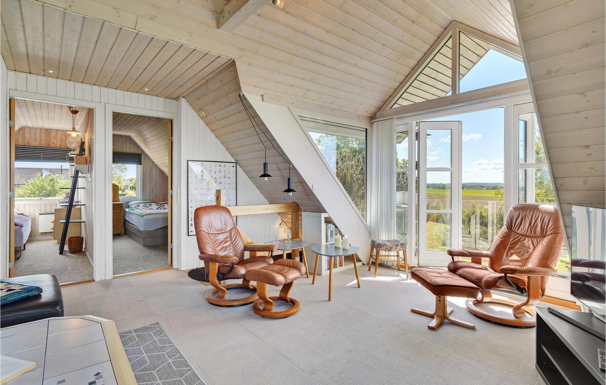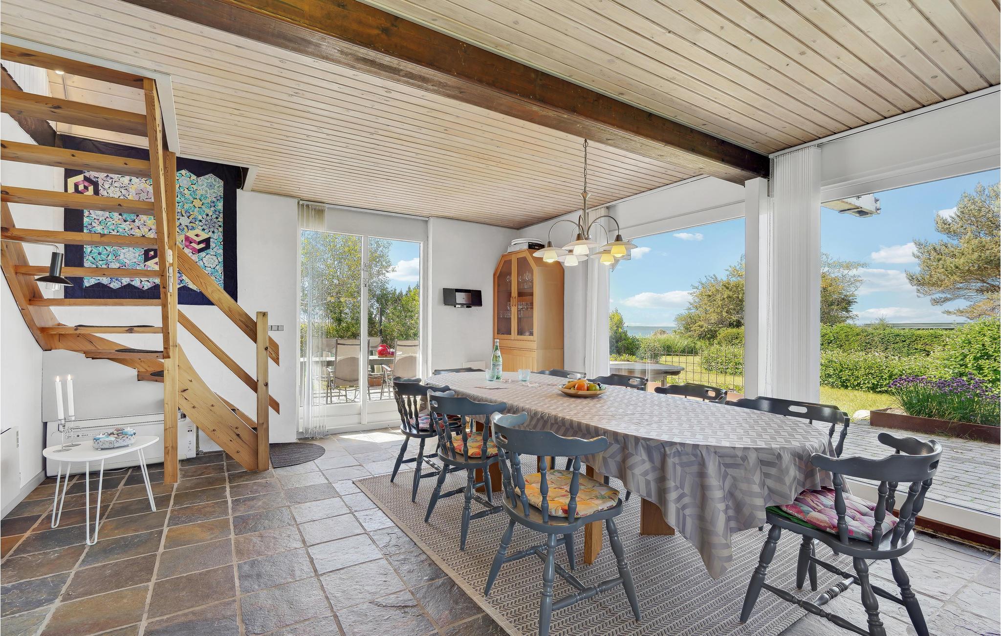 Velkommen til dette tiltalende feriehus i to plan, hvor en aktiv familieferie venter. Nyd udsigten til den smukke have gennem de store panoramavinduer, mens I spiser. Huset er hjemligt og hyggeligt indrettet i lyse, beroligende farver. Lav sjove madeksperimenter i køkkenet og kæmp imod hinanden i familiens yndlingsbrætspil. I kan også sætte lidt god musik på og tage en svingom! Mens I kan hygge med fælles madlavning i stueetagen, byder den øverste etage med to balkoner på en hyggelig stue med udsigt over Lillebælt. Træd ud på terrassen og drik morgenkaffen under åben himmel. Mens jeres børn sikkert allerede leger i haven, kan I dække morgenbordet og lægge planer for den kommende dag. Med en stor anlagt have er der fokus på en skøn ferie med en stor portion udendørsliv. Efter morgenmaden kan I gå til den dejlige sandstrand med lavt vand og badebro. Stranden er også meget populær blandt kitesurfere.