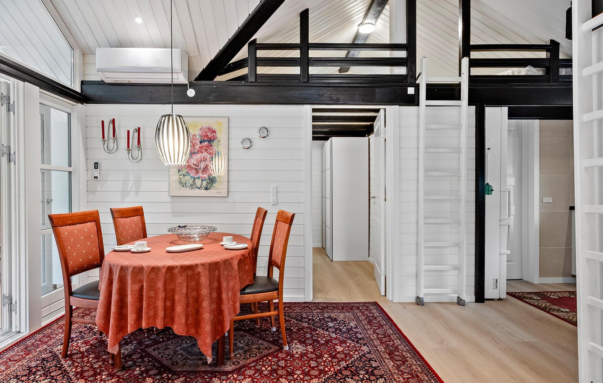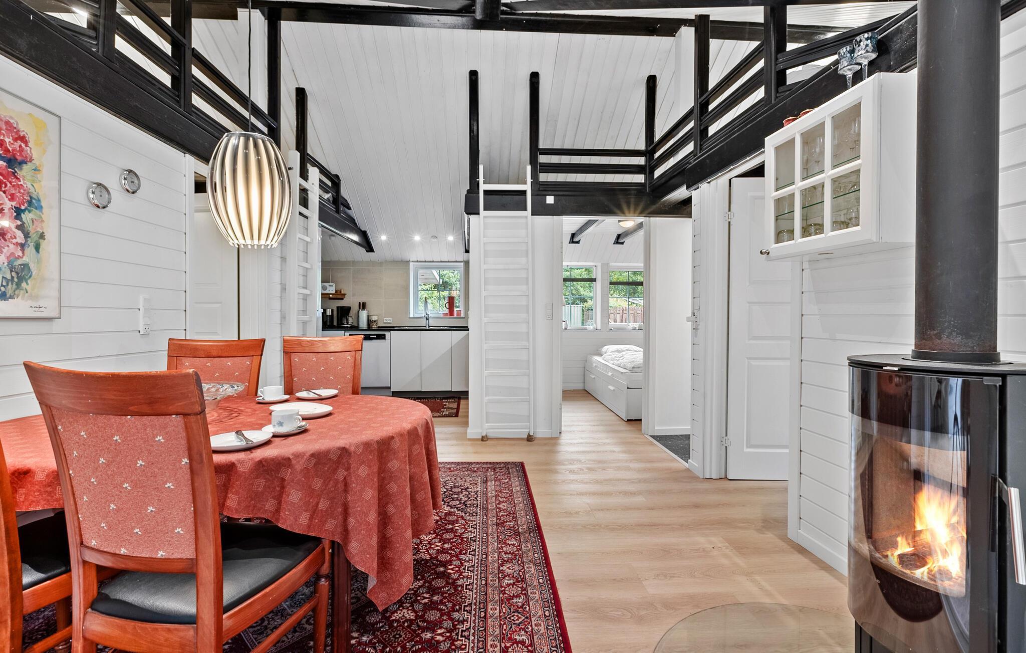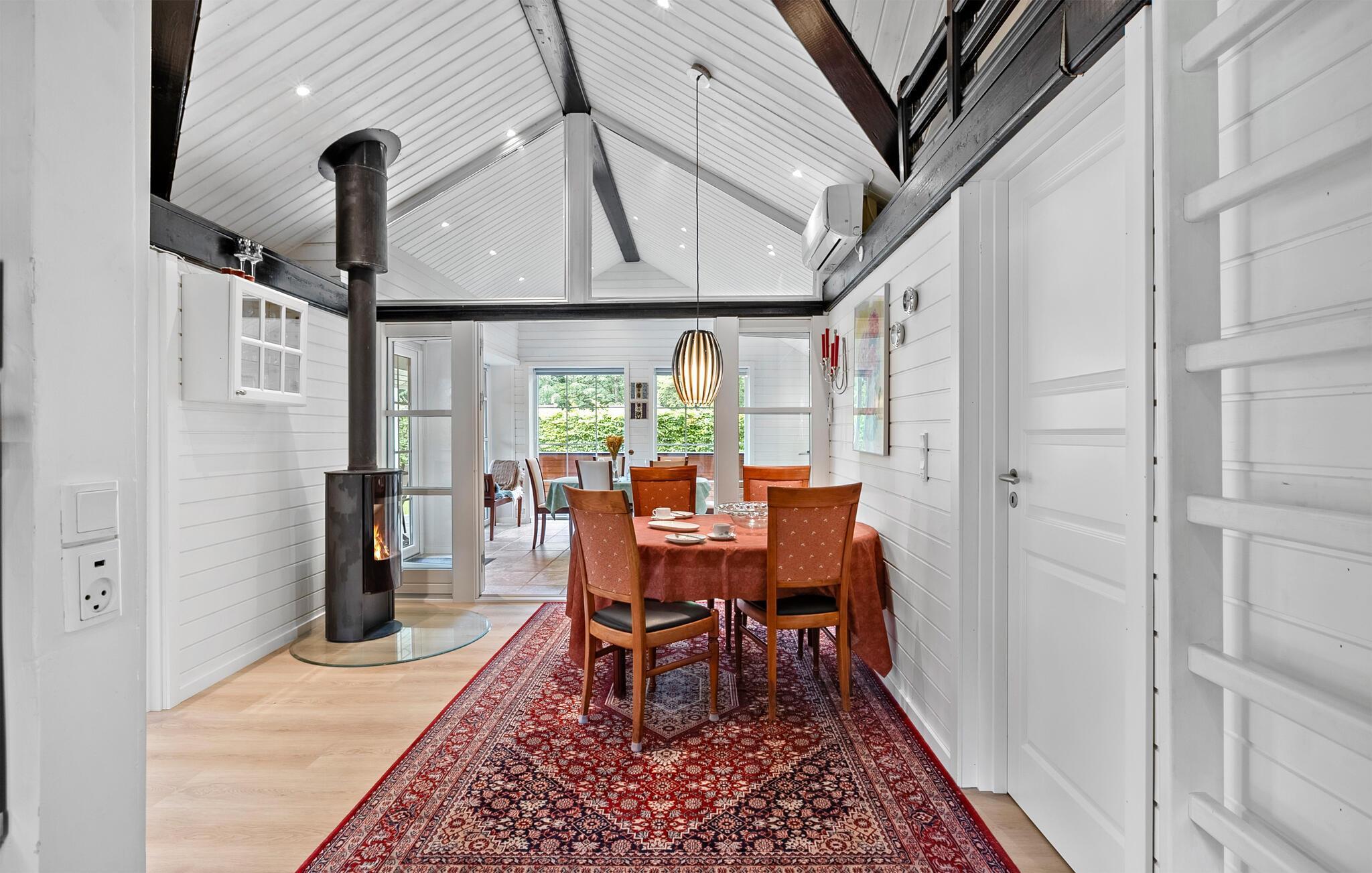 Det emmer af fred, ro og feriestemning i dette skønne sommerhus, som er lyst og åbent indrettet. Huset har flere fine detaljer, ikke mindst de opmalede sorte bjælker, som fremhæver arkitekturen. Her kan I slappe af mellem dagens udflugter, nyde livet og fylde timerne med madlavning, brætspil, gode bøger og ild i brændeovnen.