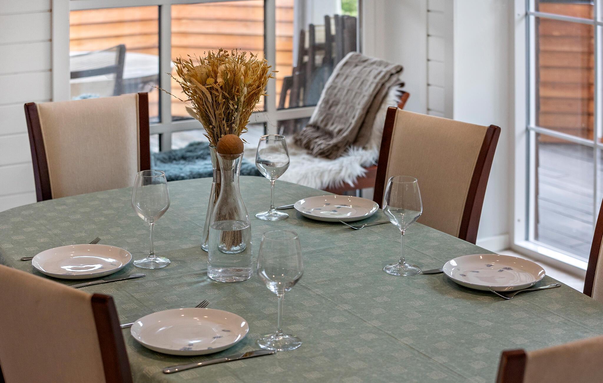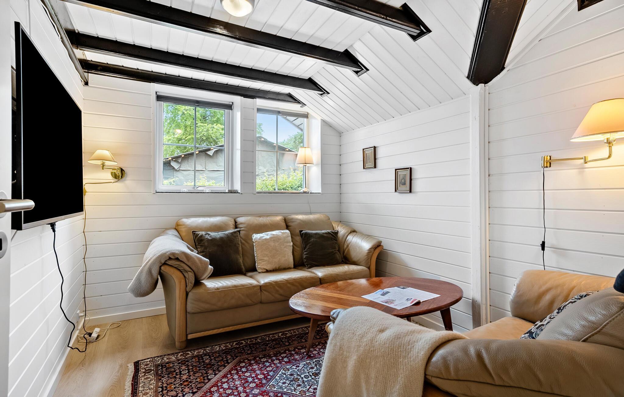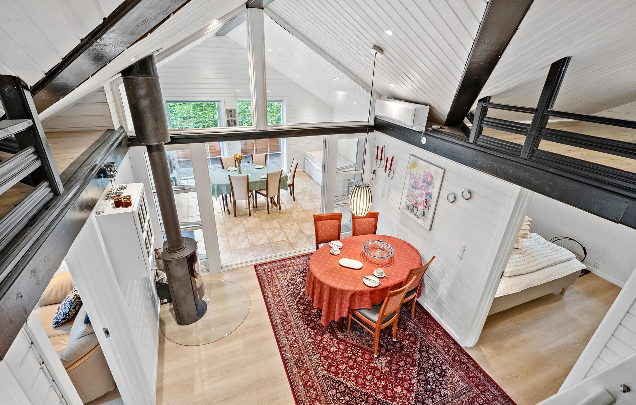 Det emmer af fred, ro og feriestemning i dette skønne sommerhus, som er lyst og åbent indrettet. Huset har flere fine detaljer, ikke mindst de opmalede sorte bjælker, som fremhæver arkitekturen. Her kan I slappe af mellem dagens udflugter, nyde livet og fylde timerne med madlavning, brætspil, gode bøger og ild i brændeovnen.