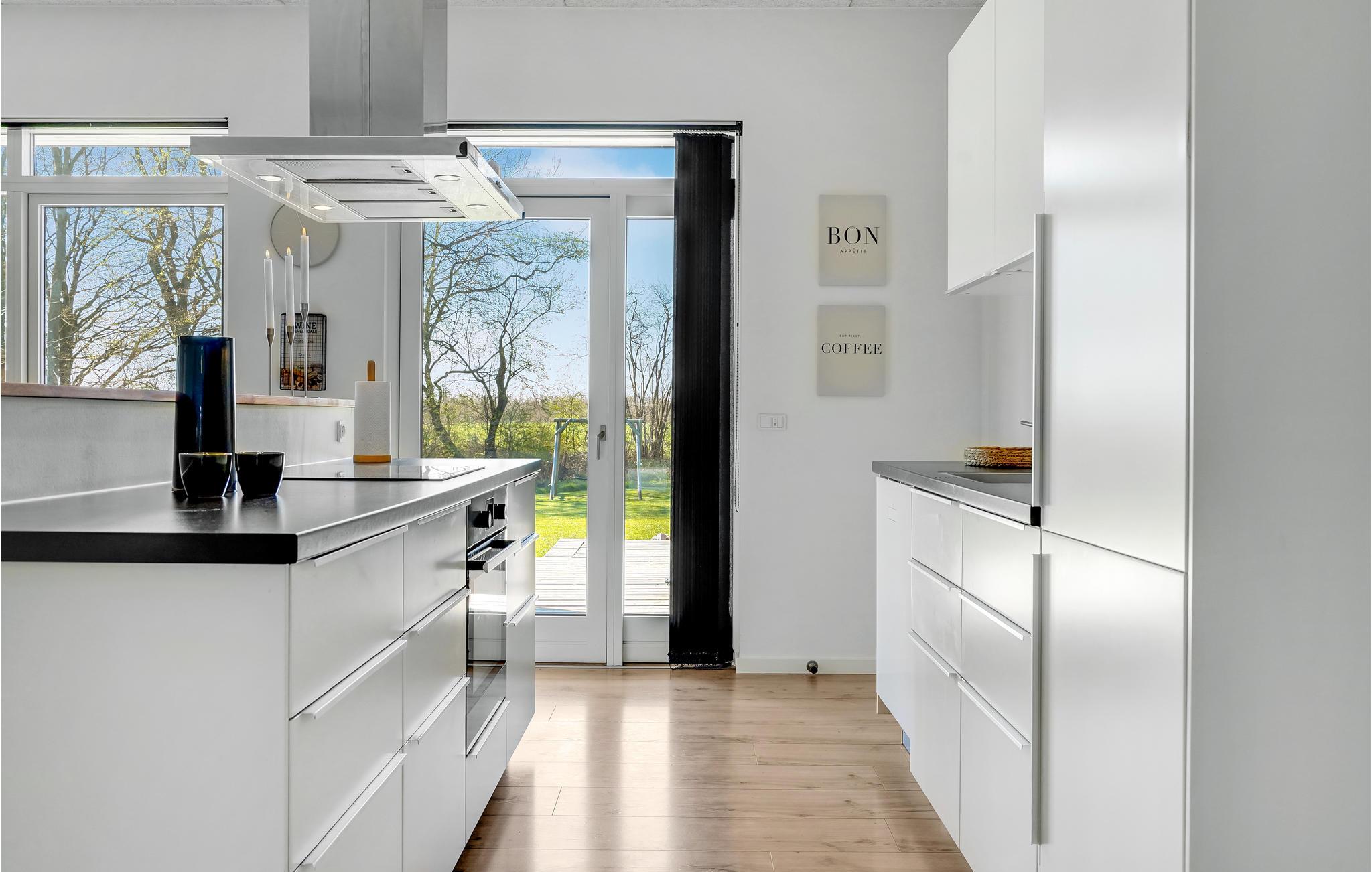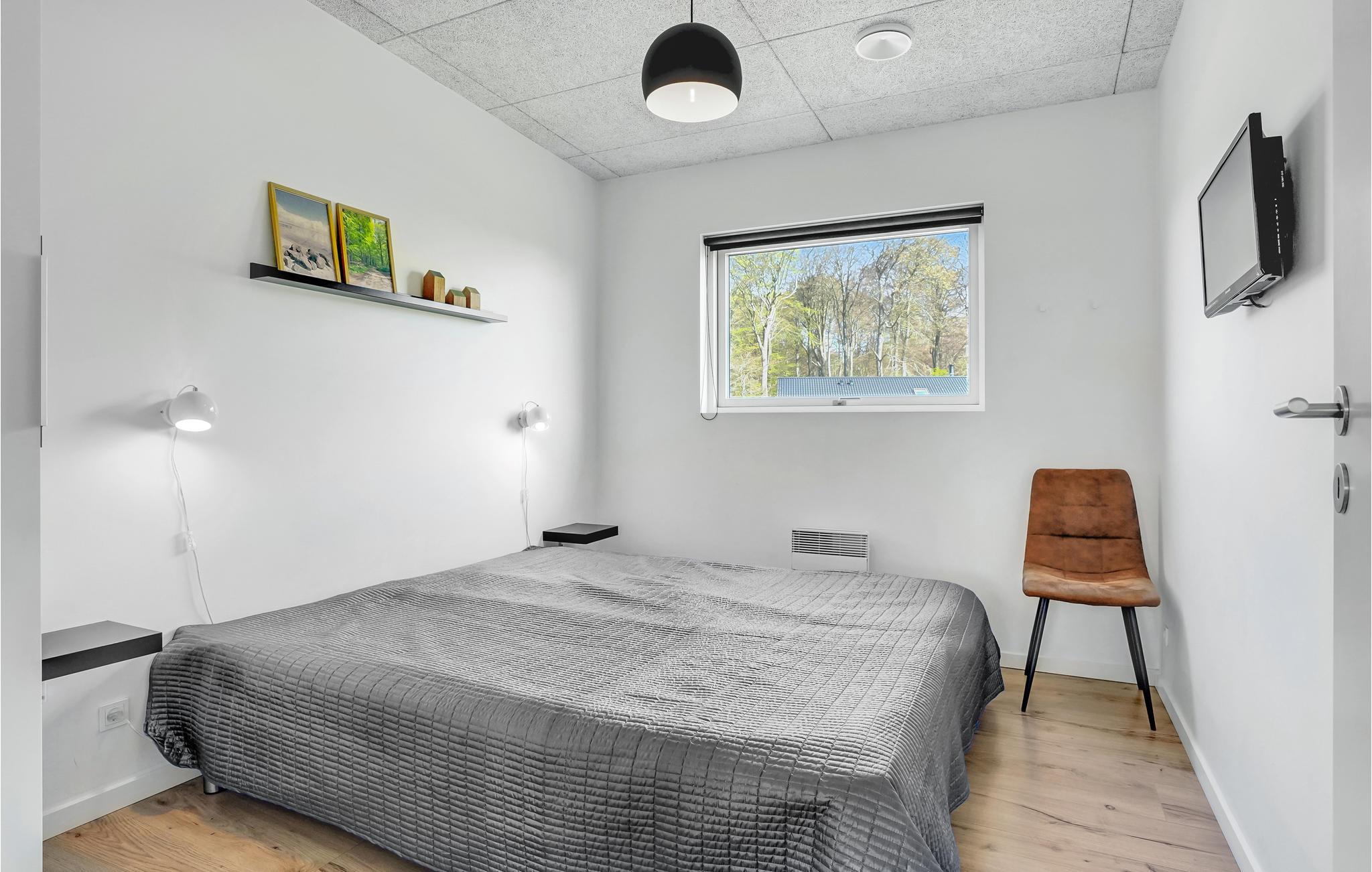 Huset er indrettet med et aktivitetsrum, hvor I kan få mange timer til at gå, her findes bl.a. billard, bordfodbold, bordtennis og spillemaskine. Det dejlige kombinerede køkken/alrum med opholdsstue har god plads til alle, og på kølige aftener kan I mødes omkring brændeovnen. I huset findes fem gode soverum, hvor køjesengene er monteret med rigtig gode boksmadrasser, så nattesøvnen er sikret. Værelserne er placeret i forskellige afdelinger af huset og alle værelser har eget TV, så det er ideelt for flere familier, der gerne vil holde ferie sammen. Desuden to flotte badeværelser, det ene indeholdende et dejligt 2-personers spabad og adgang til sauna.
