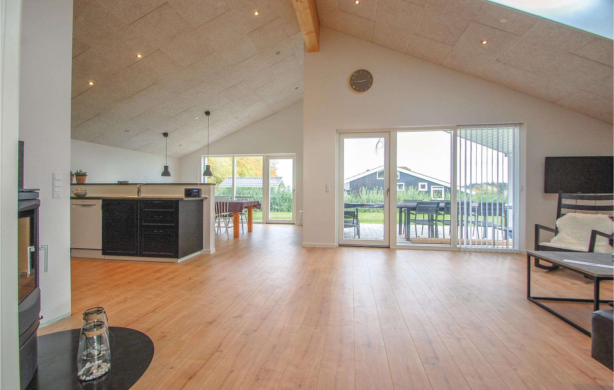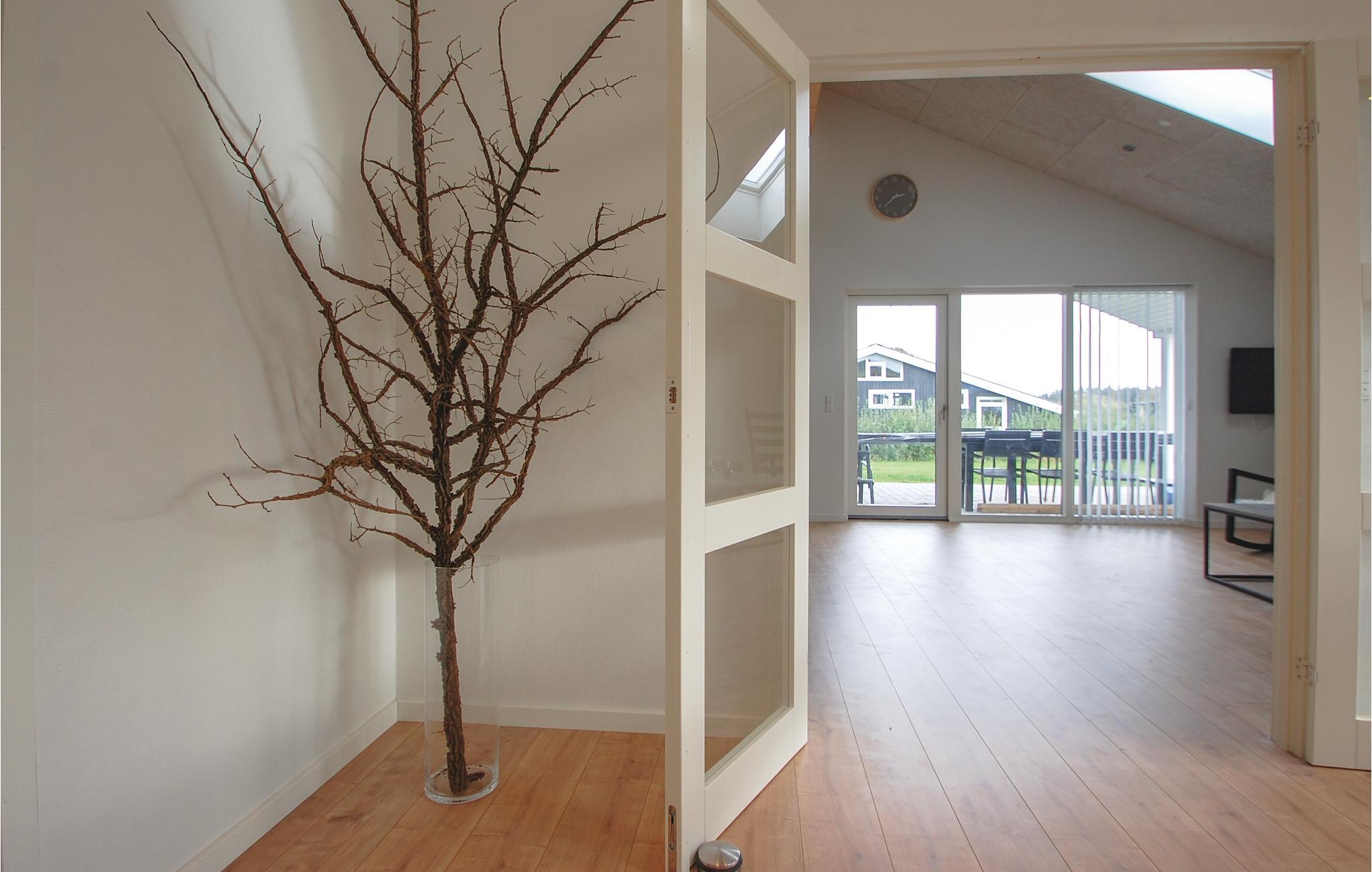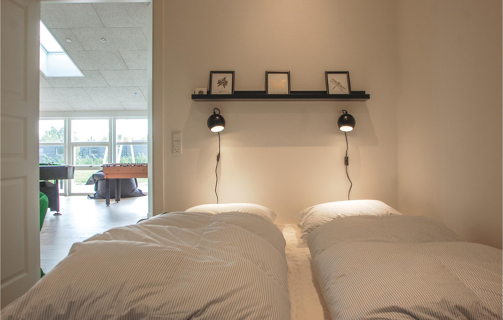 Moderne sommerhus nær strand og skov med wellness, aktivitetsrum og stor terrasse for en komfortabel ferie.