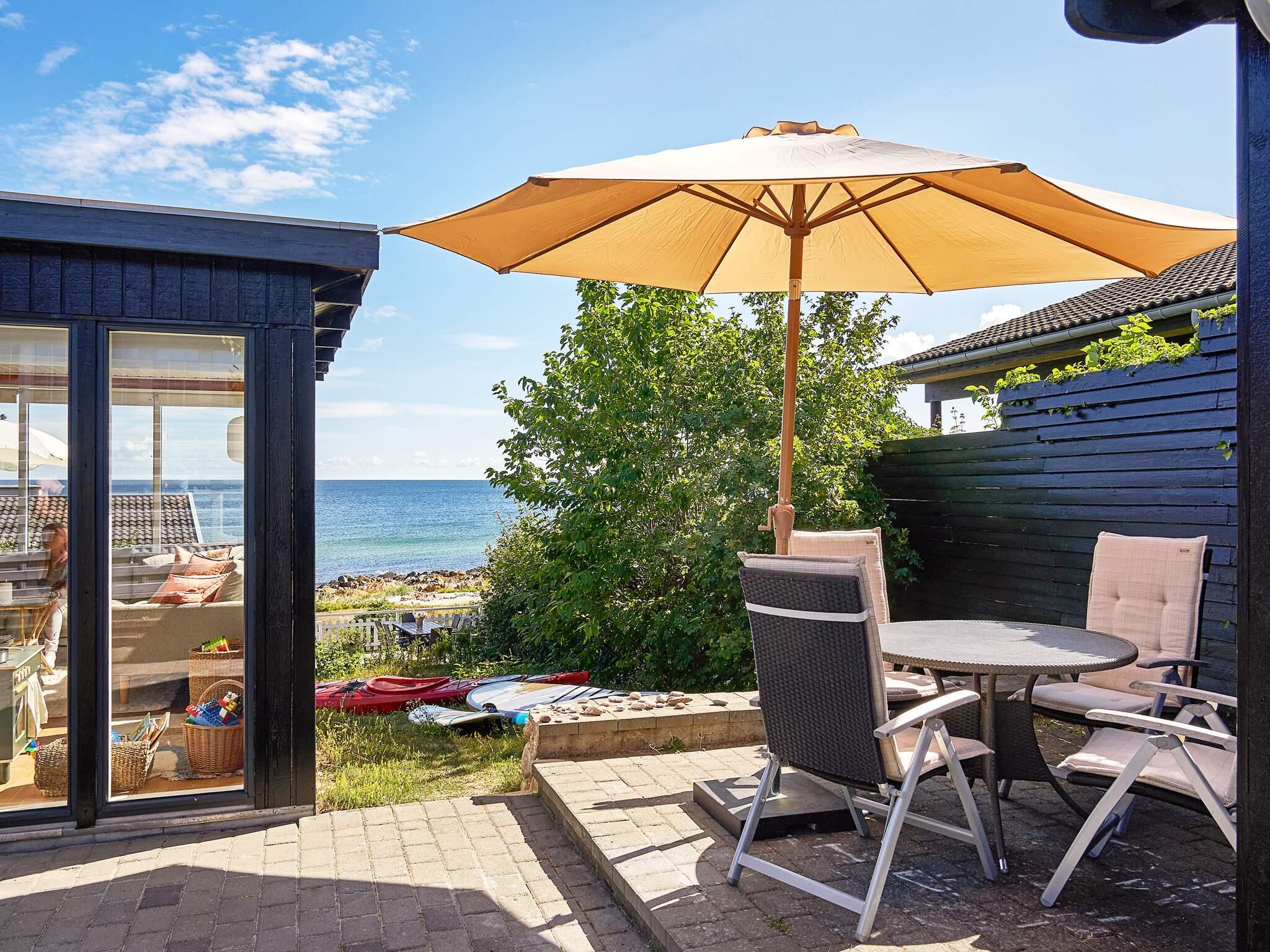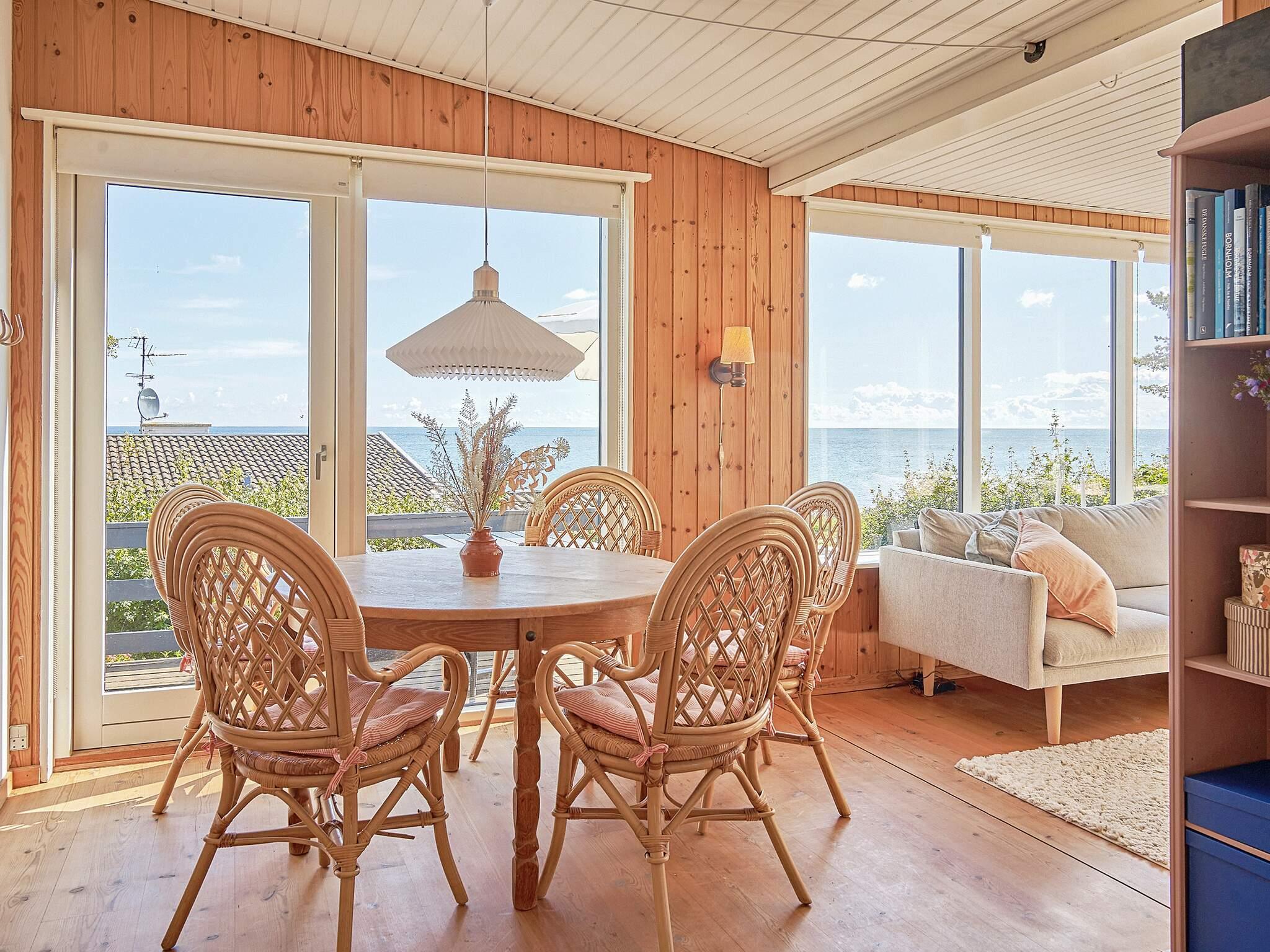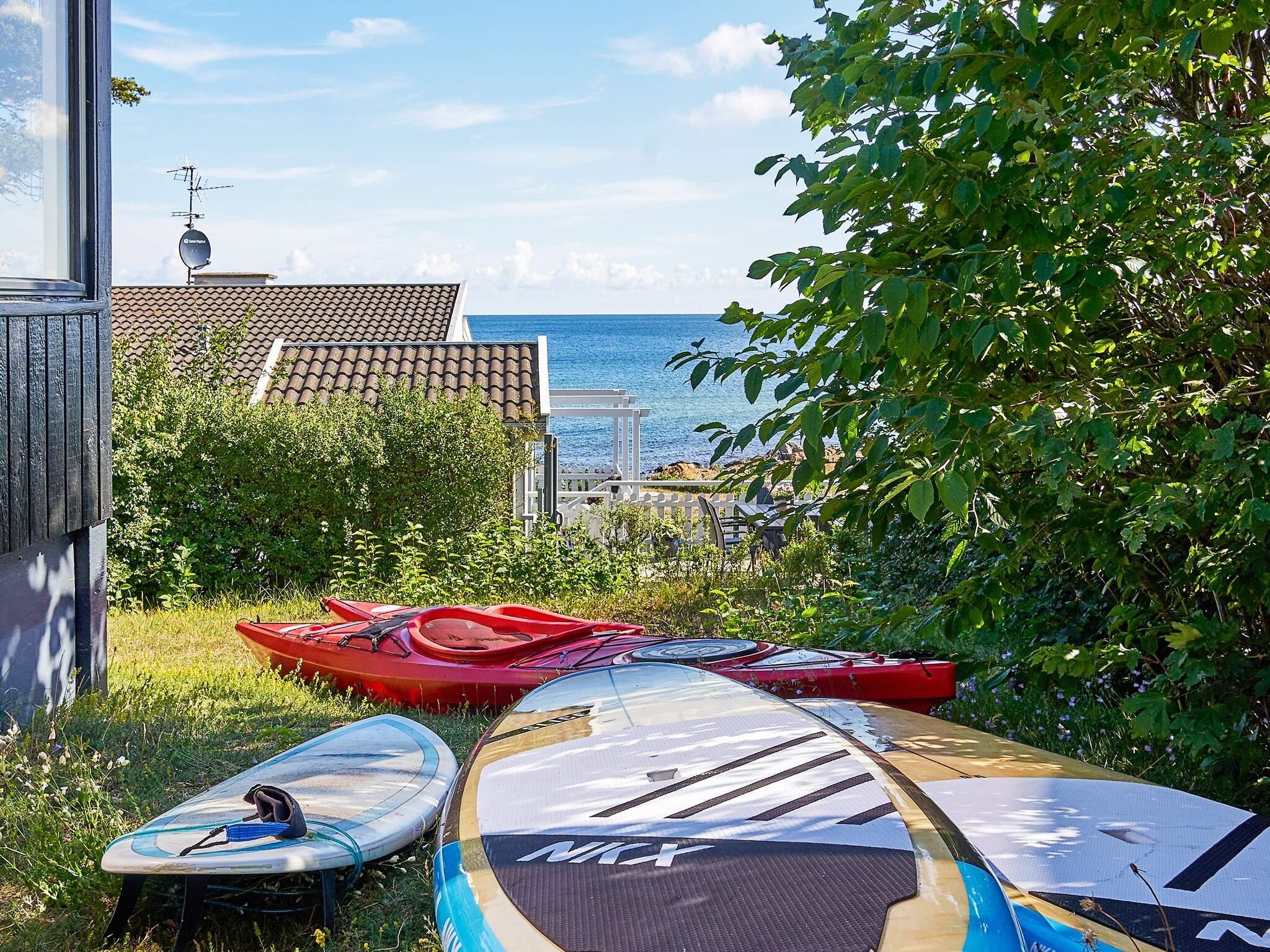 Velholdt sommerhus placeret meget tæt på sandstranden ved Sandkås på skrånende terræn ned mod havet og fra det åbne køkken, opholds- og spisestue er der den skønneste udsigt over Østersøen. Huset indeholder lyst badeværelse samt to værelser. Det ene værelse har udsigt mod vandet og har dobbeltseng til forældrene. Det andet værelse er mindre men med en stor seng (140x190) samt en køje (80x190), som er ideelt til tre børn eller 2 voksne. Huset er omkranset af terrasse og brostensbelagt gårdmiljø. Der er mulighed for at parkere bilen på grunden. Med blot 75 meter til vandet er der både mulighed for badning fra klipper og sandstrand. Huset har to kajakker samt korrekt udstyr som våddragter, redningsvest m.m. (benyttes på eget ansvar/forsikring), barnestol/højstol, babyseng samt legeområde med legetøj. Udlejes ikke til ungdomsgrupper.