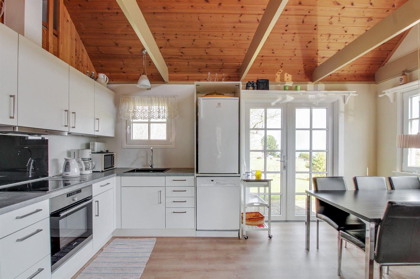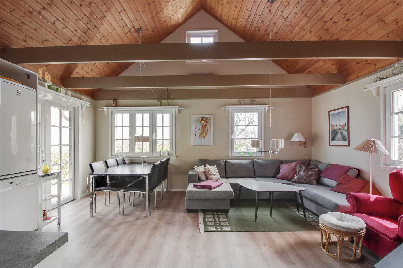 Flot sommerhus i træ, bygget 1991, beliggende med virkelig flot panoramaudsigt over Østersøen fra såvel hus som grund. Den hyggelige have ligger ugeneret, og med det kuperede terræn fremstår alt pænt og nydeligt. Åben såvel som overdækket terrasse samt grill. Indvendigt er der trægulve, vægge og lofter ligeledes i lyst træ. Lyst og venligt badeværelse med bruseniche. Køkkenet er udstyret med bl. a. fryser, mikrobølgeovn og opvaskemaskine. Rummelig stue, kombineret med køkkenafdelingen, indeholder TV med parabol (digital), DVD- og CD-afspiller, video, radio samt brændeovn. Sovepladserne fordeler sig på 2 soveværelser, begge med dobbeltseng samt rummelig og lys hems med 2 sovepladser. Desuden gratis, trådløs internetforbindelse (computer skal medbringes) og vaskemaskine til rådighed. Huset er udstyret med energibesparende varmepumpe, der også virker som aircondition. Et hus med atmosfære og indrettet med god smag og kvalitetsbevidsthed. Der er en lille sandstrand ved Sandkås, og desuden byder området på både restauranter og minigolfbane.
