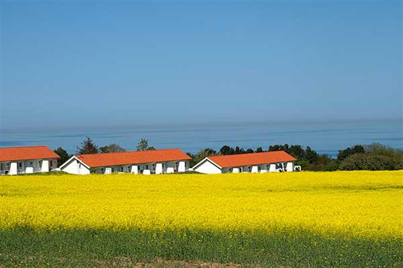 Lys ferielejlighed på 27 kvadratmeter beliggende med den fineste udsigt ud over markerne i det skrånende terræn og ud over Østersøen med Christians Ø i det fjerne.