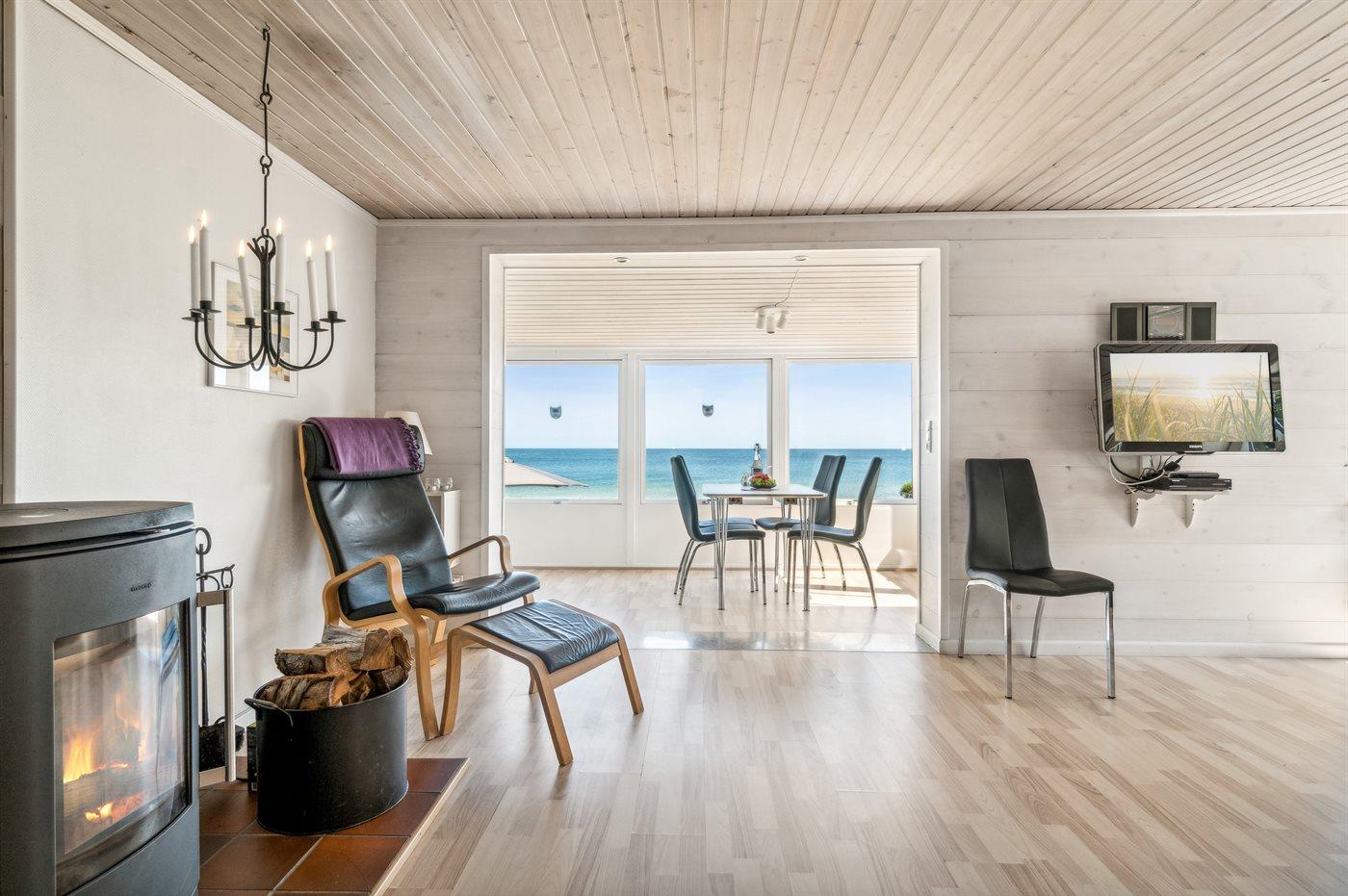 Især er det en nydelse at sidde og følge havets bevægelser og forandringer fra den lyse og hyggelige udestue. Huset er pænt møbleret, og de lyse gulve giver et lyst interiør.