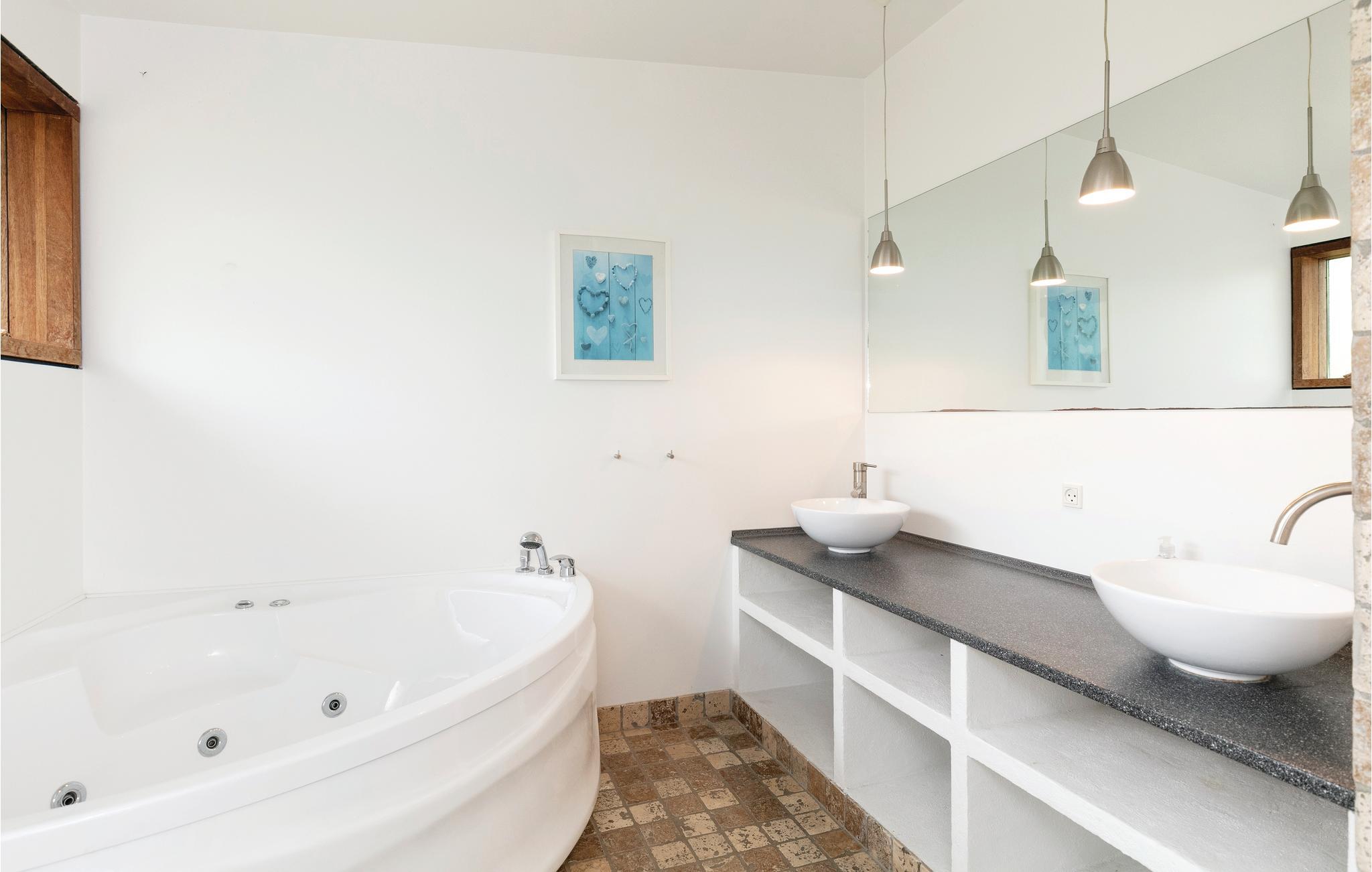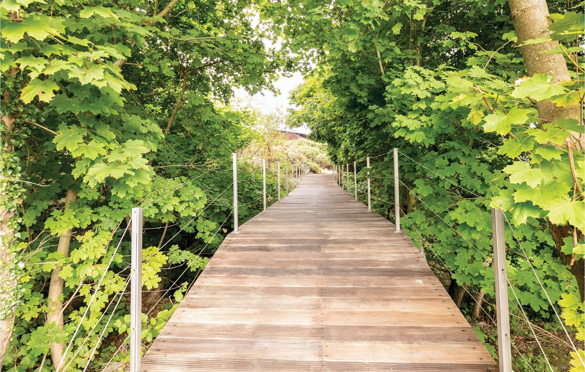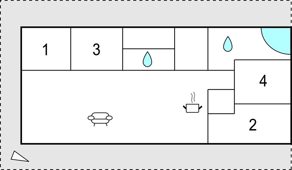 Lækkert indrettet kvalitetsferiehus med god havudsigt. Det ligger højt på en åben naturgrund nær den skønne bornholmske klippekyst og en pragtfuld lille sandstrand. Adgang til huset sker via en gangbro og kuperet sti. Fra husets store åbne spise- og opholdsstue er der udgang til en dejlig træterrasse og I har en fin havudsigt på grund af de store panoramavinduer. Opholdsstuen er indrettet med pæne møbler og en pejs, der giver rummet hygge. Ligeledes er det flotte åbne køkken med de moderne faciliteter et rart sted at tilberede feriens måltider. Huset har to dejlige badeværelser. I soverum 4 er sengene 185 cm lange og mest beregnet til børn. Nedenfor huset ligger landevejen og den skal krydses for at komme ned til klippekysten og sandstranden.