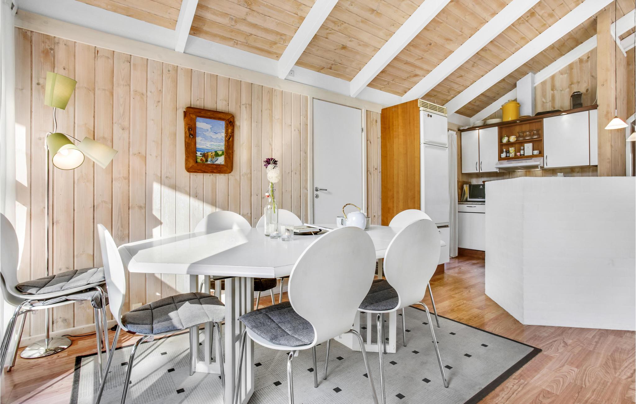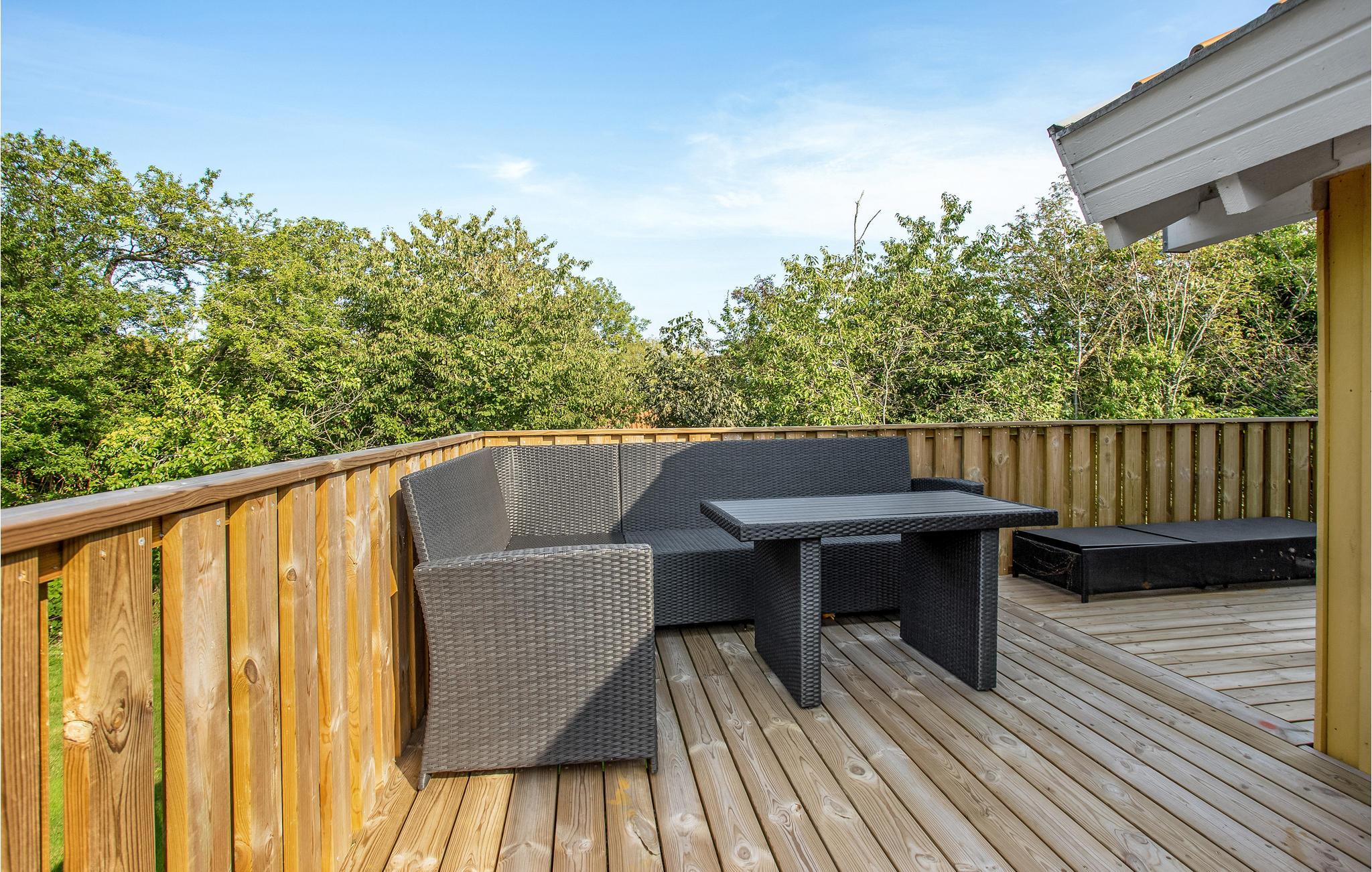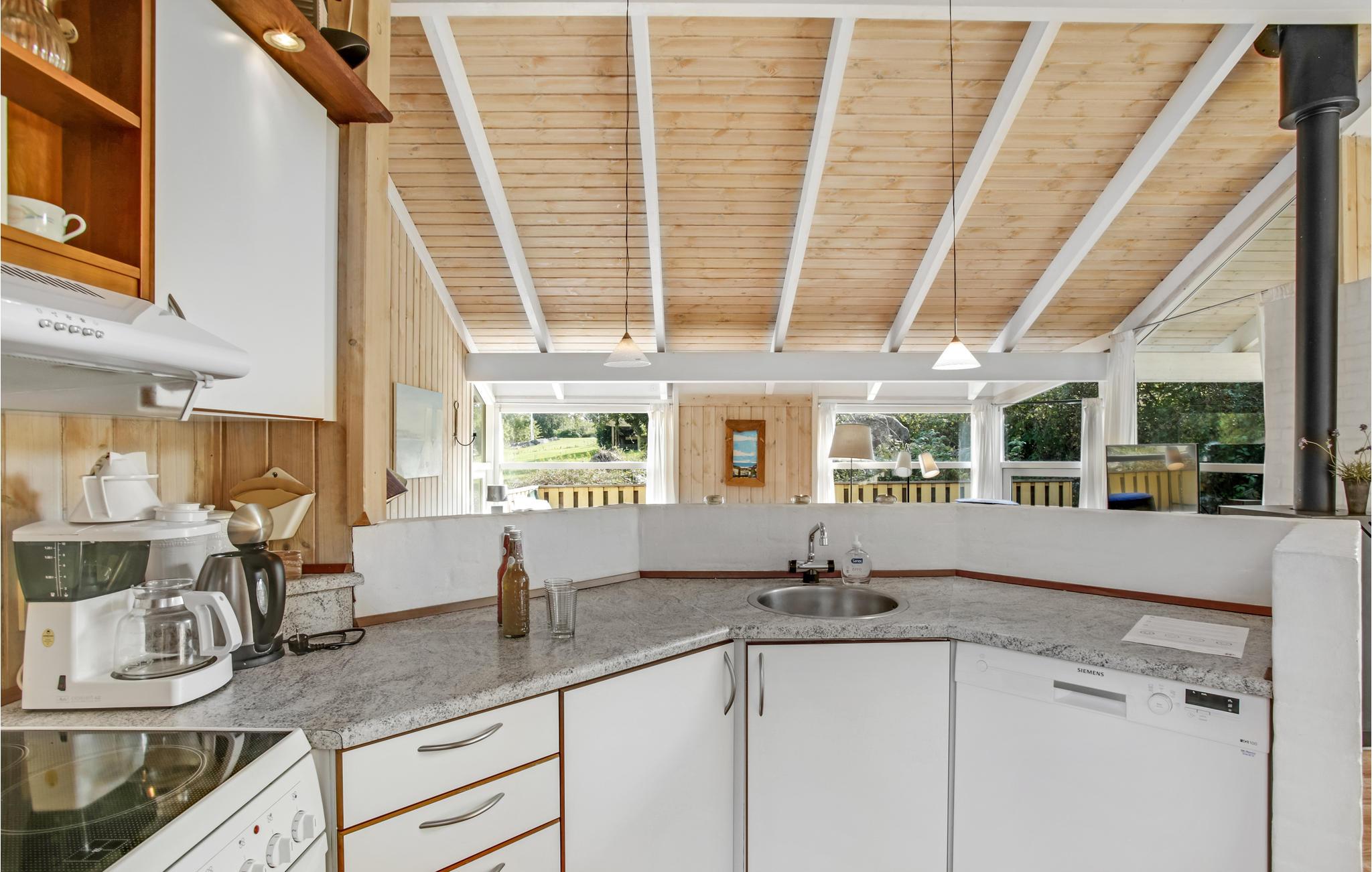 Dette skønne kvalitetshus af træ, ligger som sidste hus i et meget populært feriehusområde på Nordbornholm, nær en attraktiv klippekyst og god badestrand. Huset er lyst og pænt indrettet med en god opholdsstue med brændeovn, et dejligt åbent køkken og en hyggelig spisestue. Huset har flere terrasser, hvilket giver jer mulighed for at nyde de mange solskinstimer og slappe af med udsigt til den flotte bornholmske natur. Endelig indeholder dette feriehus også et pænt badeværelse med spabad og sauna samt tre soveværelser og en mindre hems.